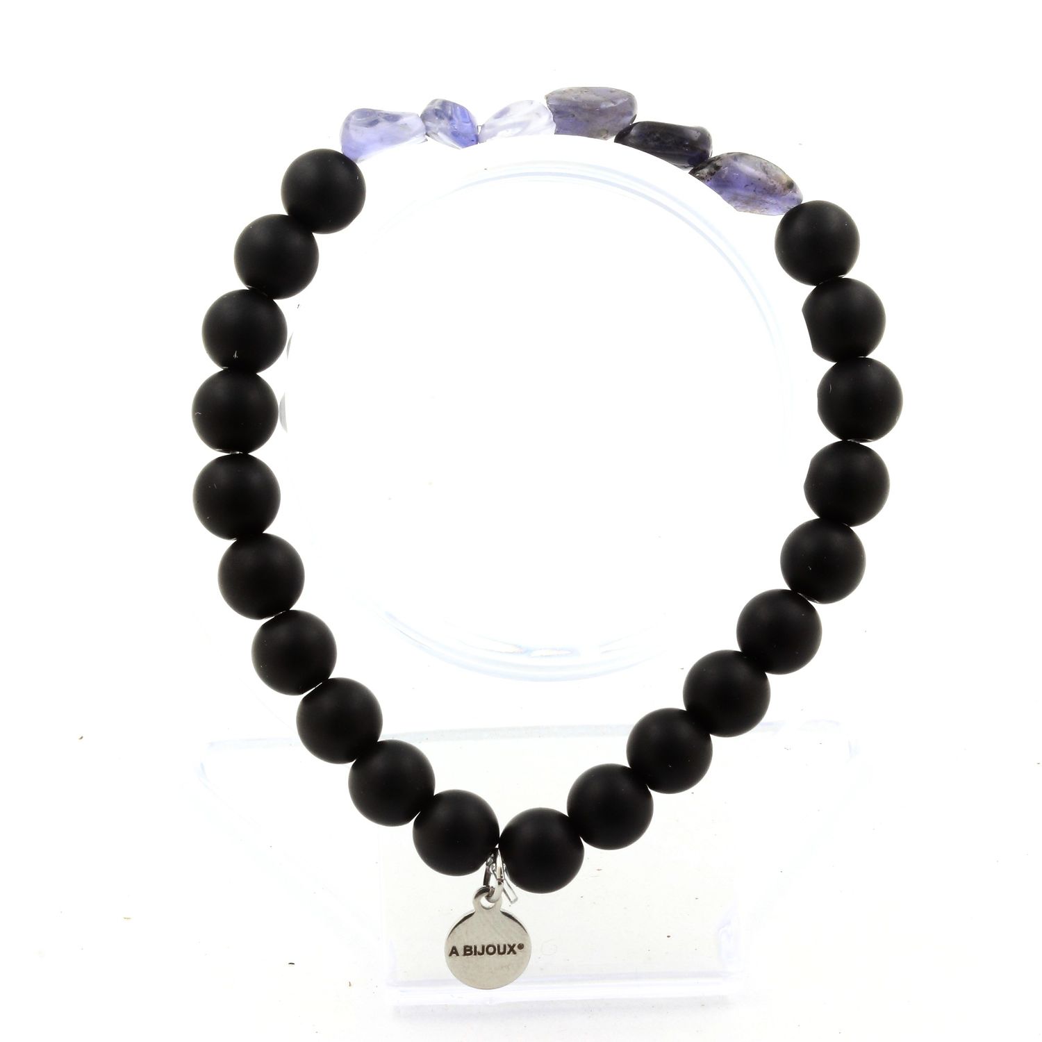 Bracelet Cordierite Iolite de Madagascar + Perles Onyx noir mat de 8 mm.