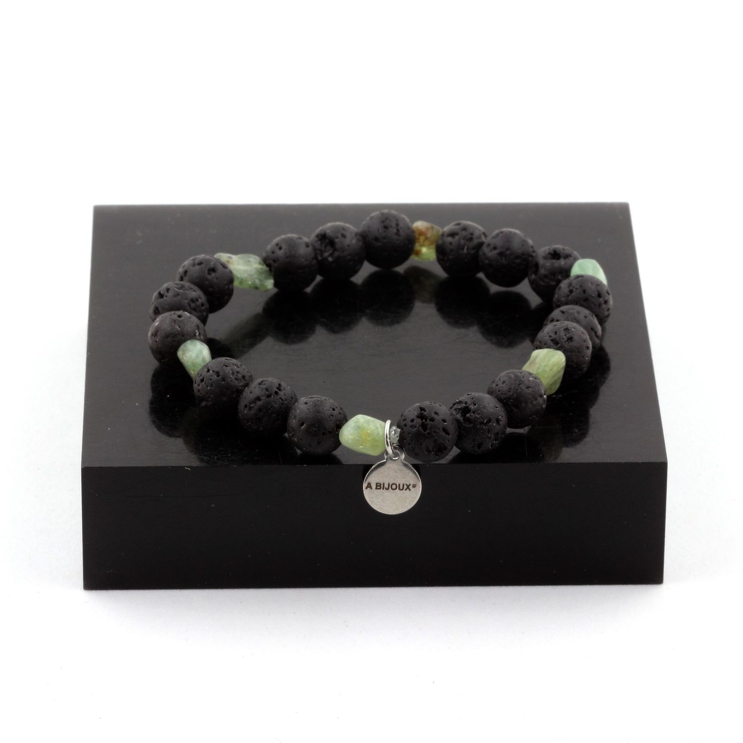 Bracelet Cyanite verte du Brésil + Perles Lave de 8 mm.