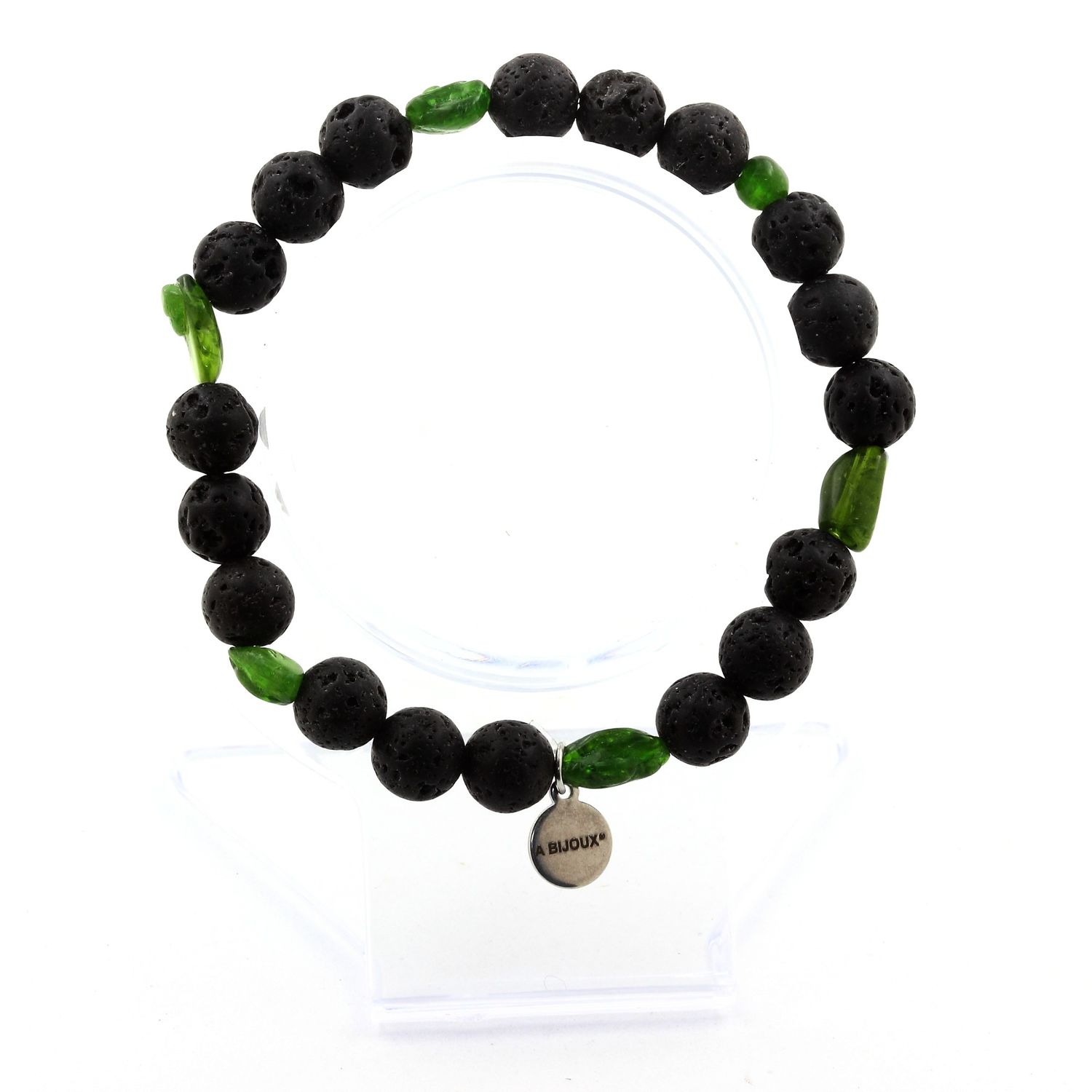 Bracelet Diopside du Brésil + Perles Lave 8 mm.
