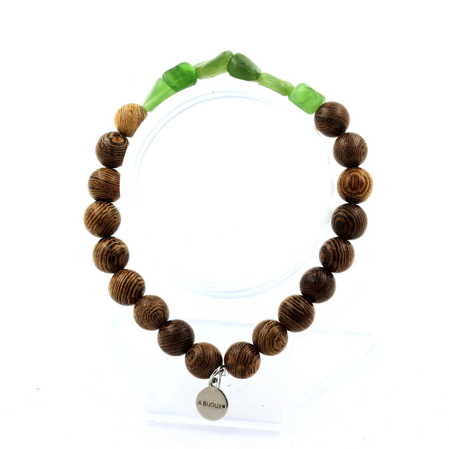 Bracelet Jade néphrite de Sibérie (Russie) + Perles bois de 8 mm.