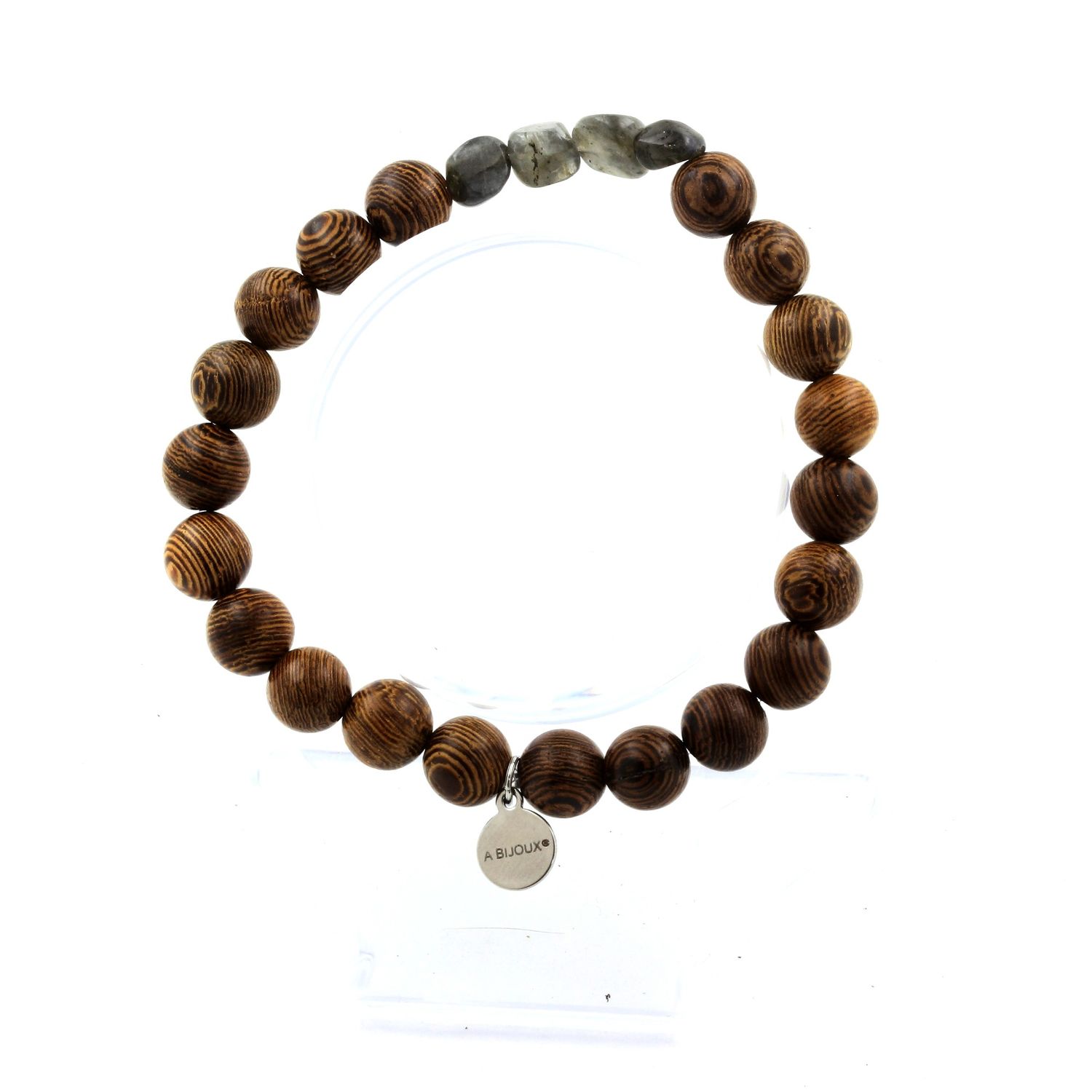 Bracelet Labradorite de Finlande + Perles bois 8 mm.