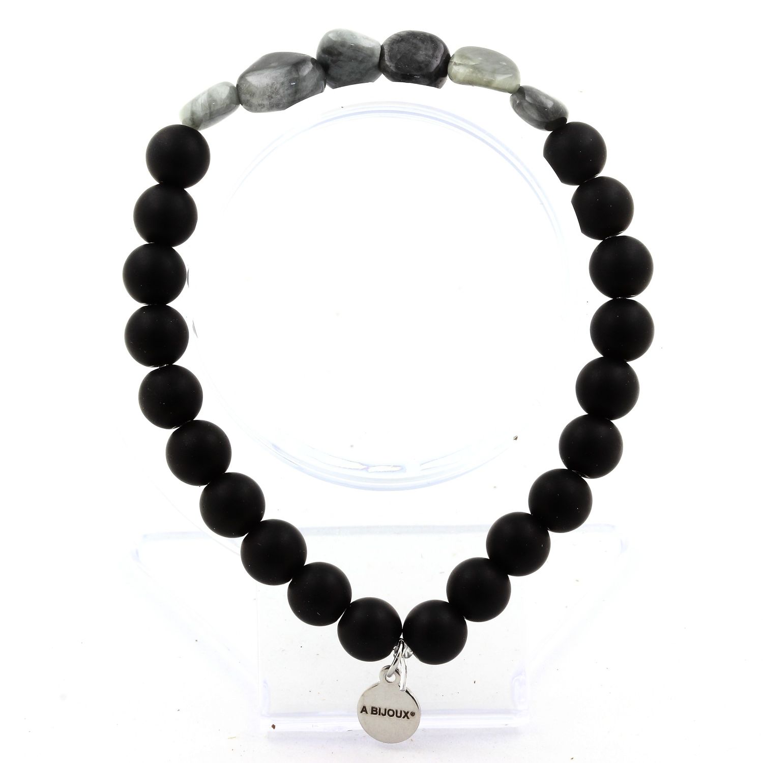 Bracelet Oeil de faucon d' Afrique du Sud + Perles Onyx noir mat 8 mm.