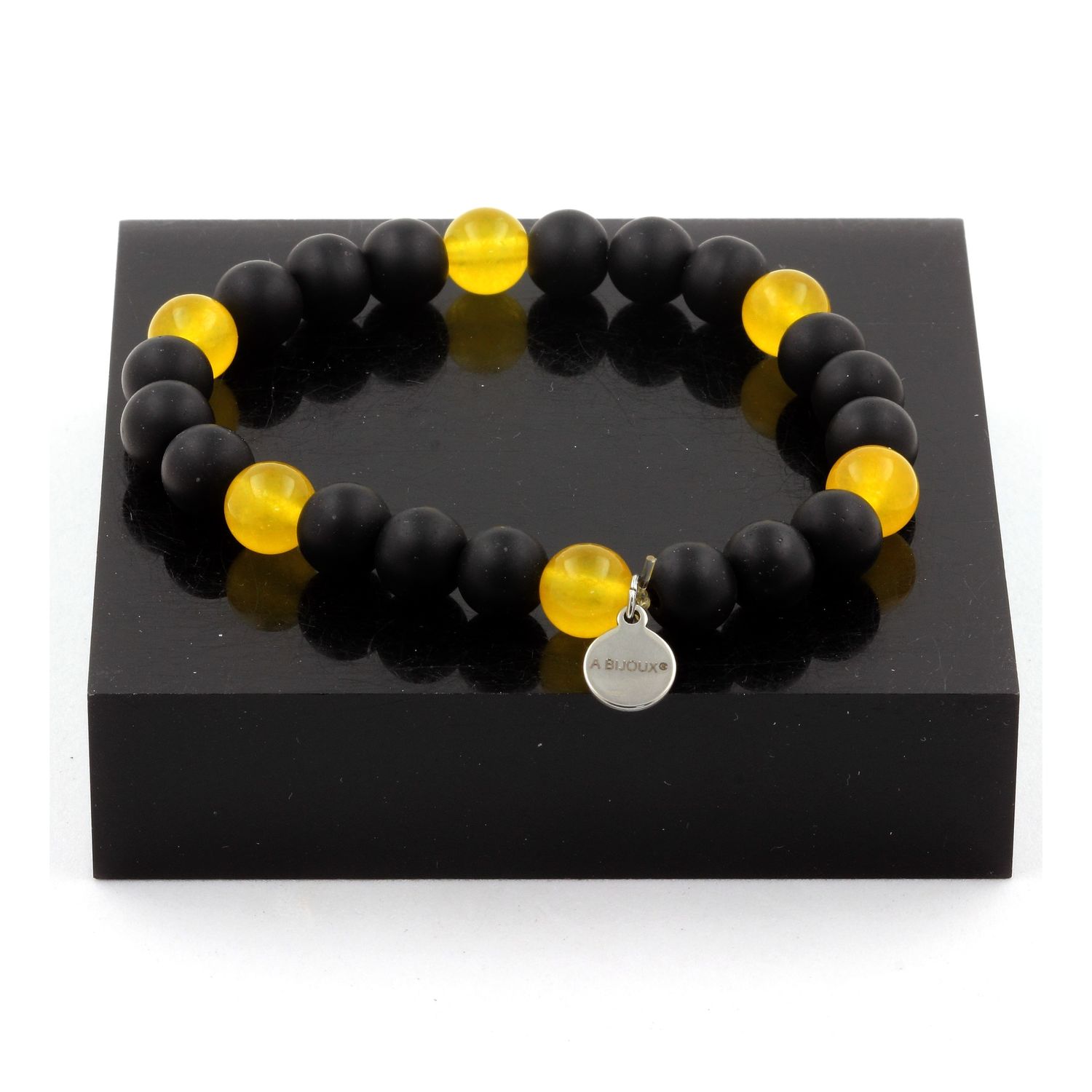 Bracelet Perles Agate jaune + Onyx noir mat 8 mm.