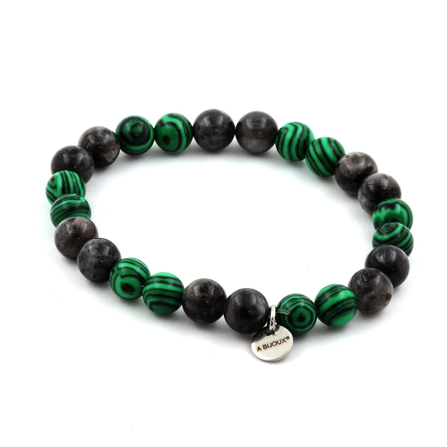 Bracelet Perles Labradorite + Malachite 8 mm.