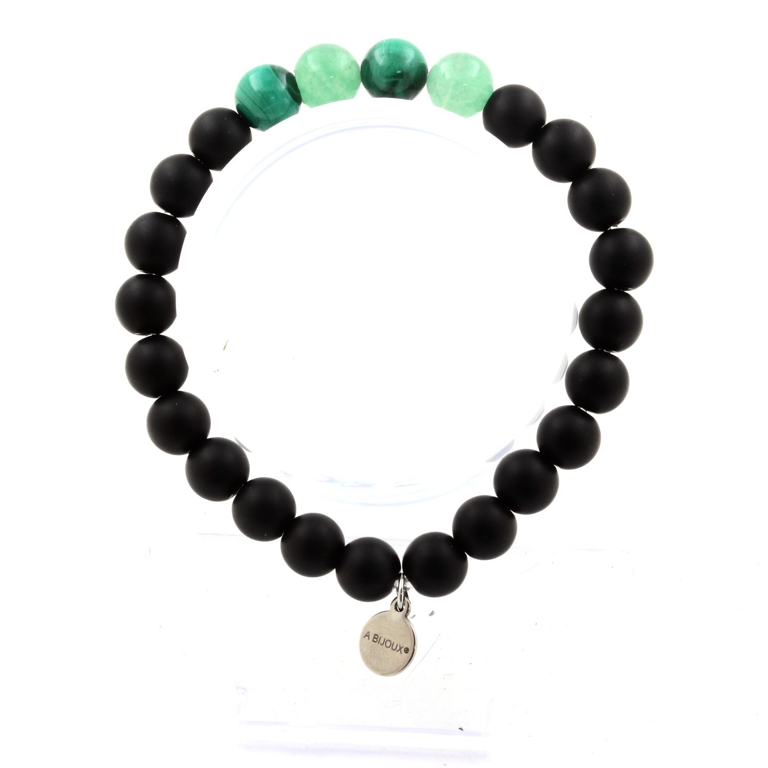 Bracelet Perles Malachite du Congo + Aventurine + Onyx noir mat 8 mm.