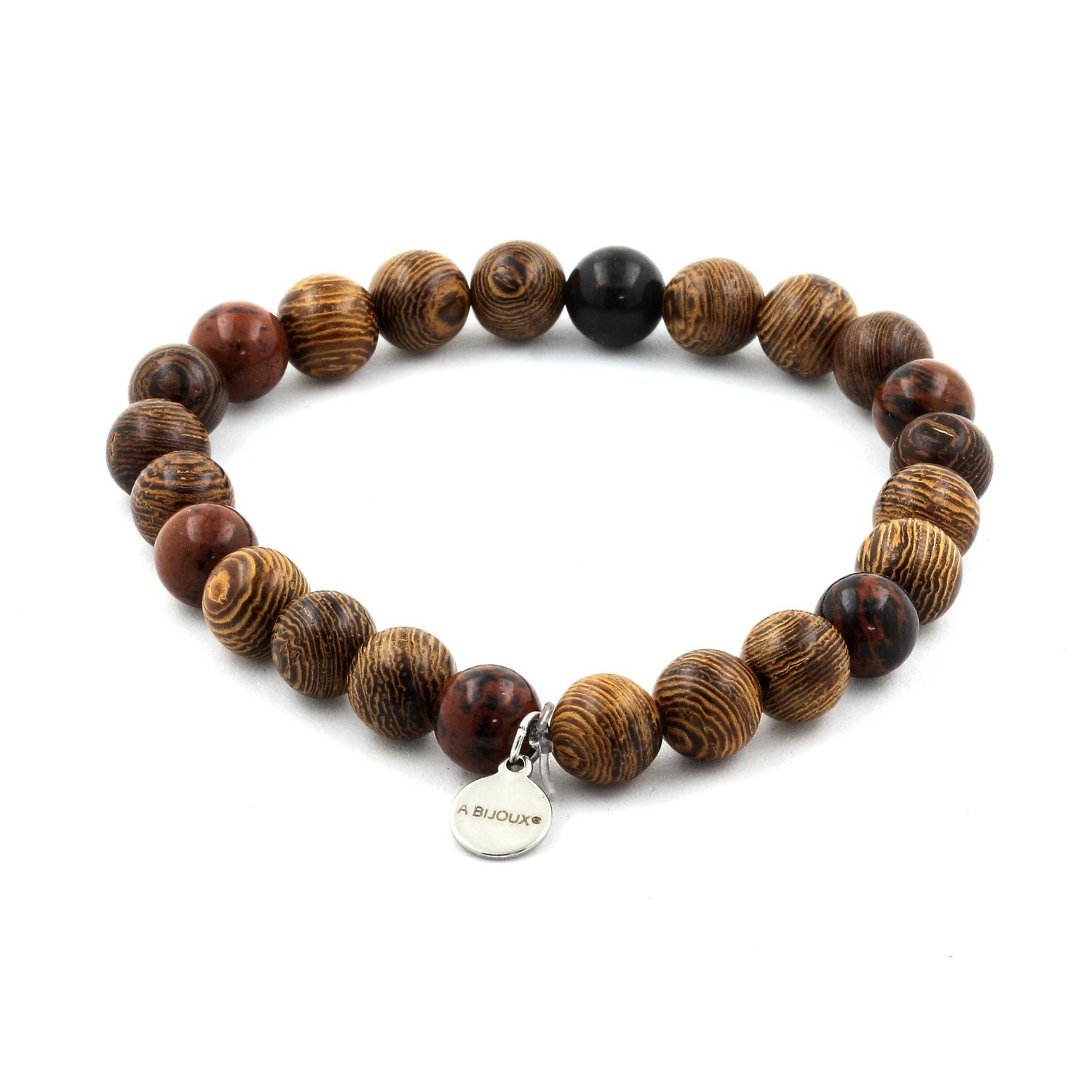 Bracelet Perles Obsidienne Mahogany + bois 8 mm.