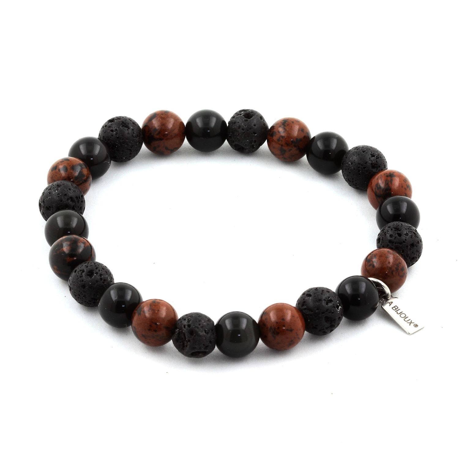 Bracelet Perles Obsidienne Mahogany + Obsidienne noire + Lave de 8 mm.