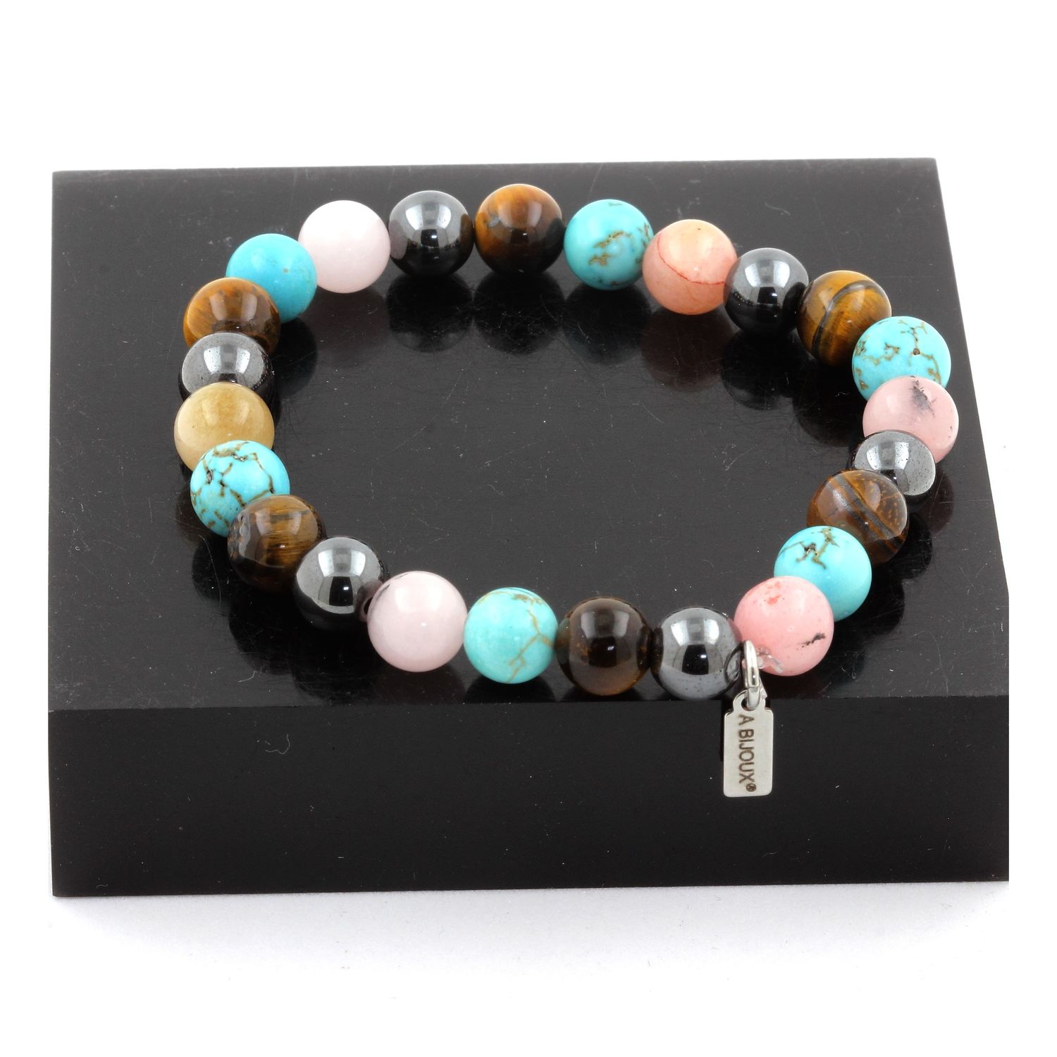 Bracelet Perles Oeil de Tigre + Hématite + Opale Rose + Turquoise 8 mm.