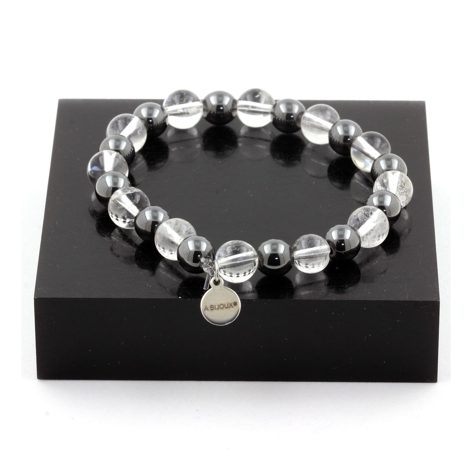 Bracelet Perles Quartz + Hématite de 8 mm.