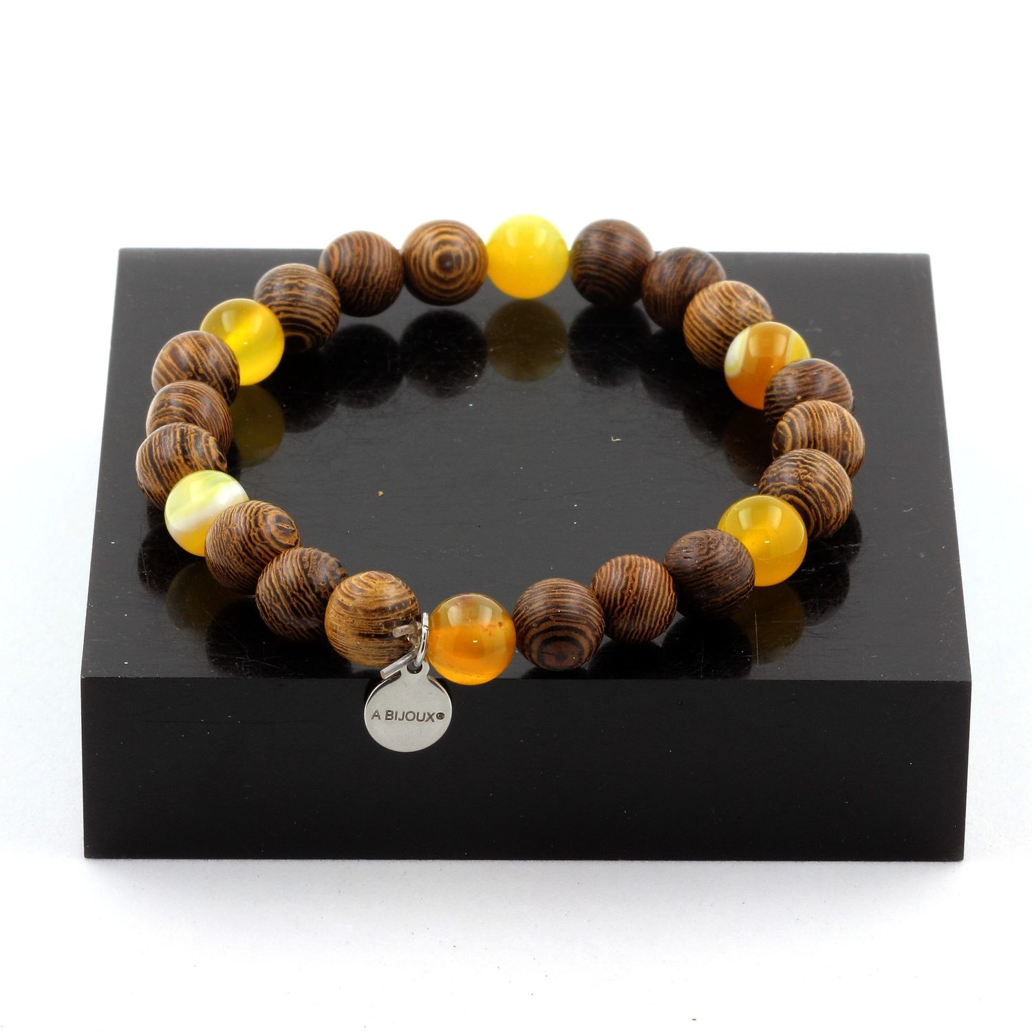 Bracelet Perles Sardonyx jaune + bois 8 mm.