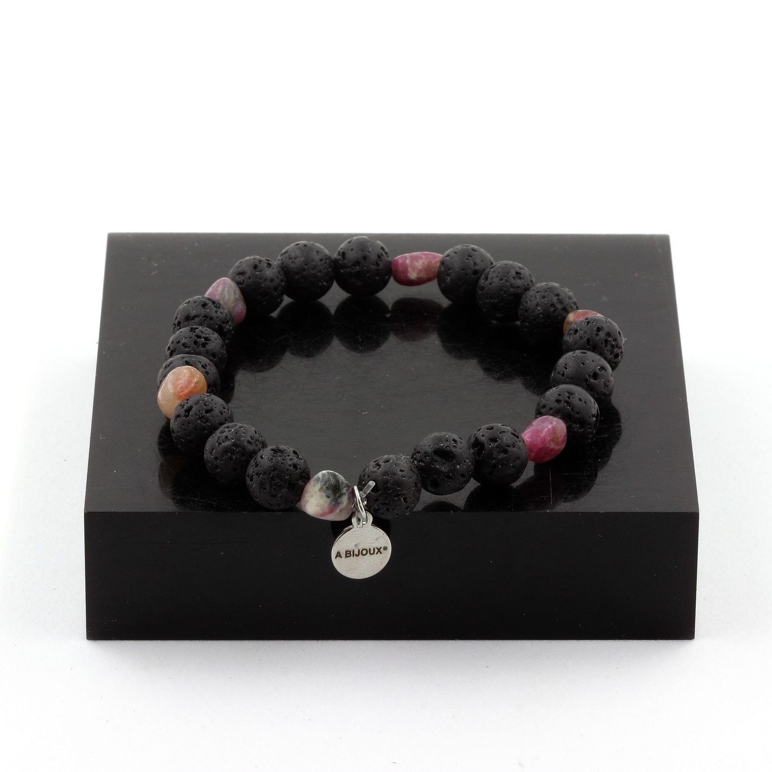 Bracelet Tourmaline Rubellite du Brésil + Perles Lave 8 mm.