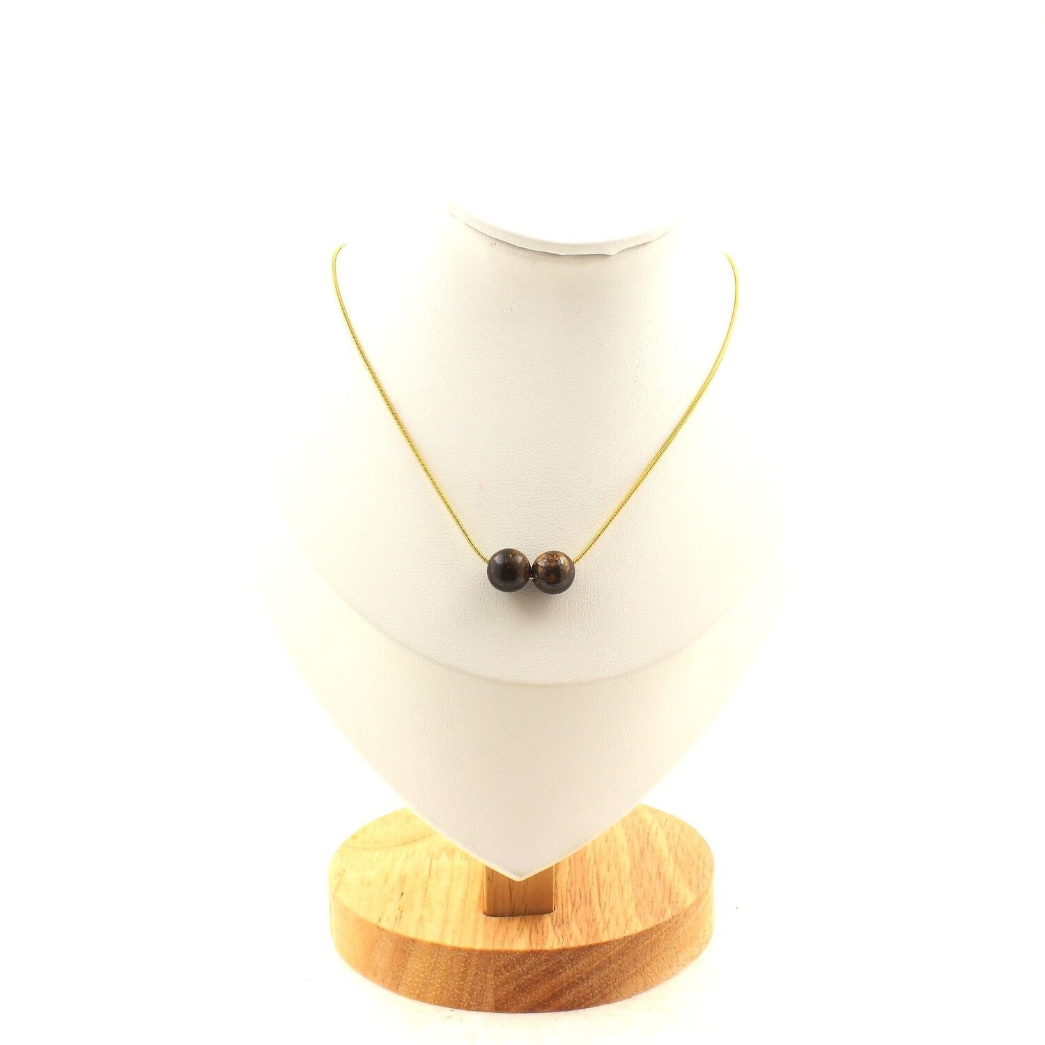 Bronzite 2 beads 8 mm necklace, golden stainless steel chain length 45 cm. We can make it to your length on request. Made in France in our A Bijoux workshop. Delivered in a box pouch. Necklace for women, men, children.