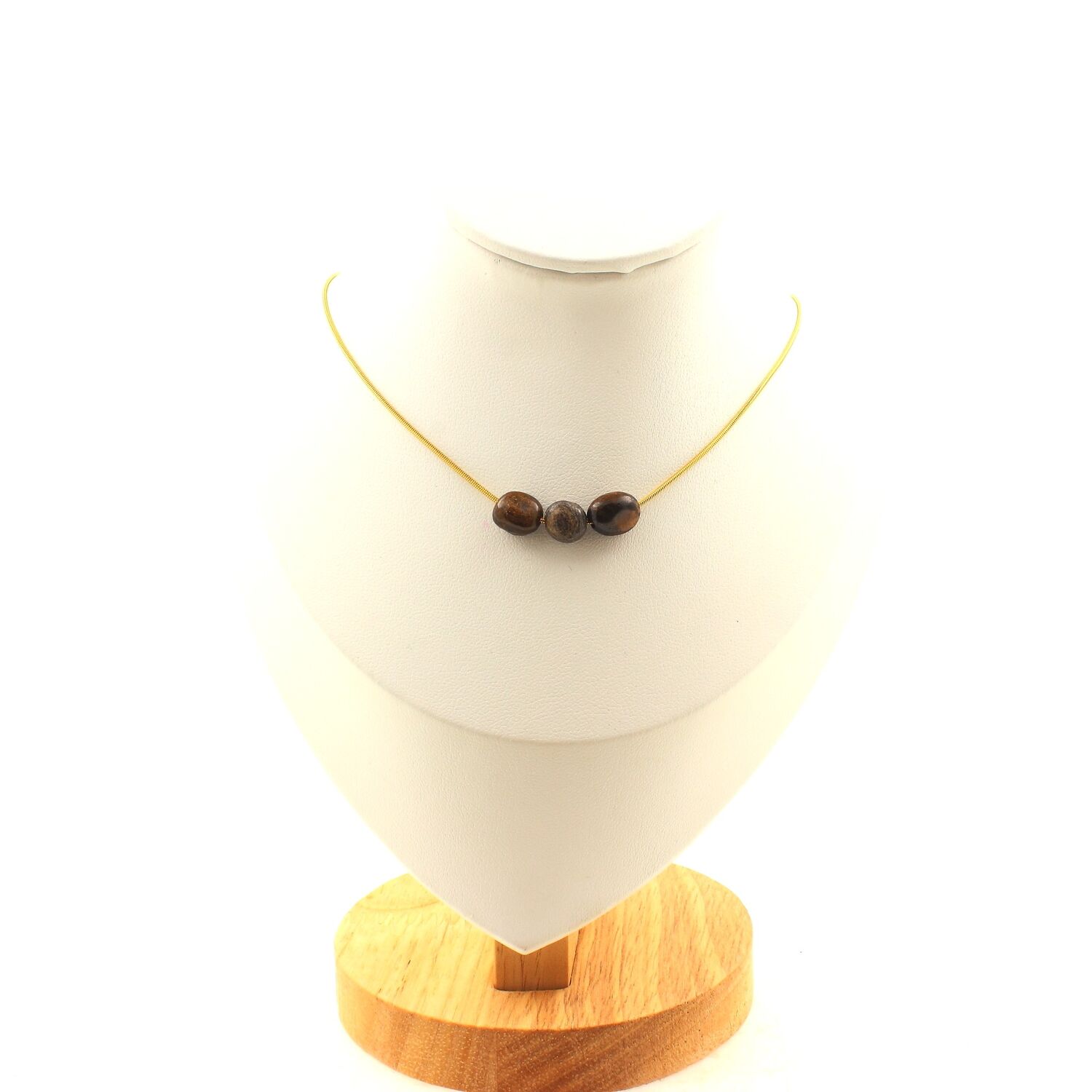 Bronzite from Brazil 3 beads necklace, golden stainless steel chain length 45 cm. We can make it to your length on request. Made in France in our A Bijoux workshop. Delivered in a box pouch. Necklace for women, men, children.