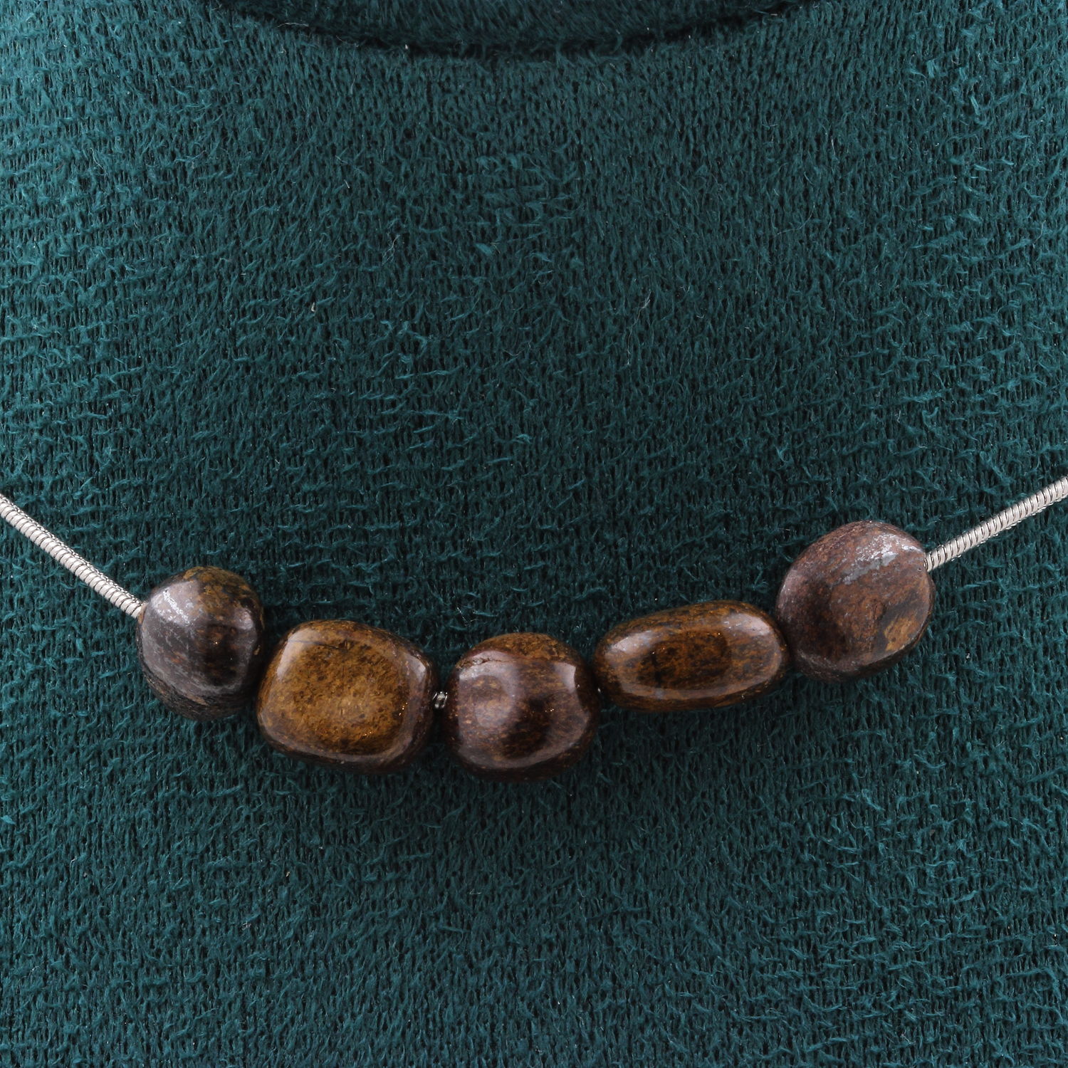 Bronzite from Brazil 5 beads necklace. Stainless steel chain