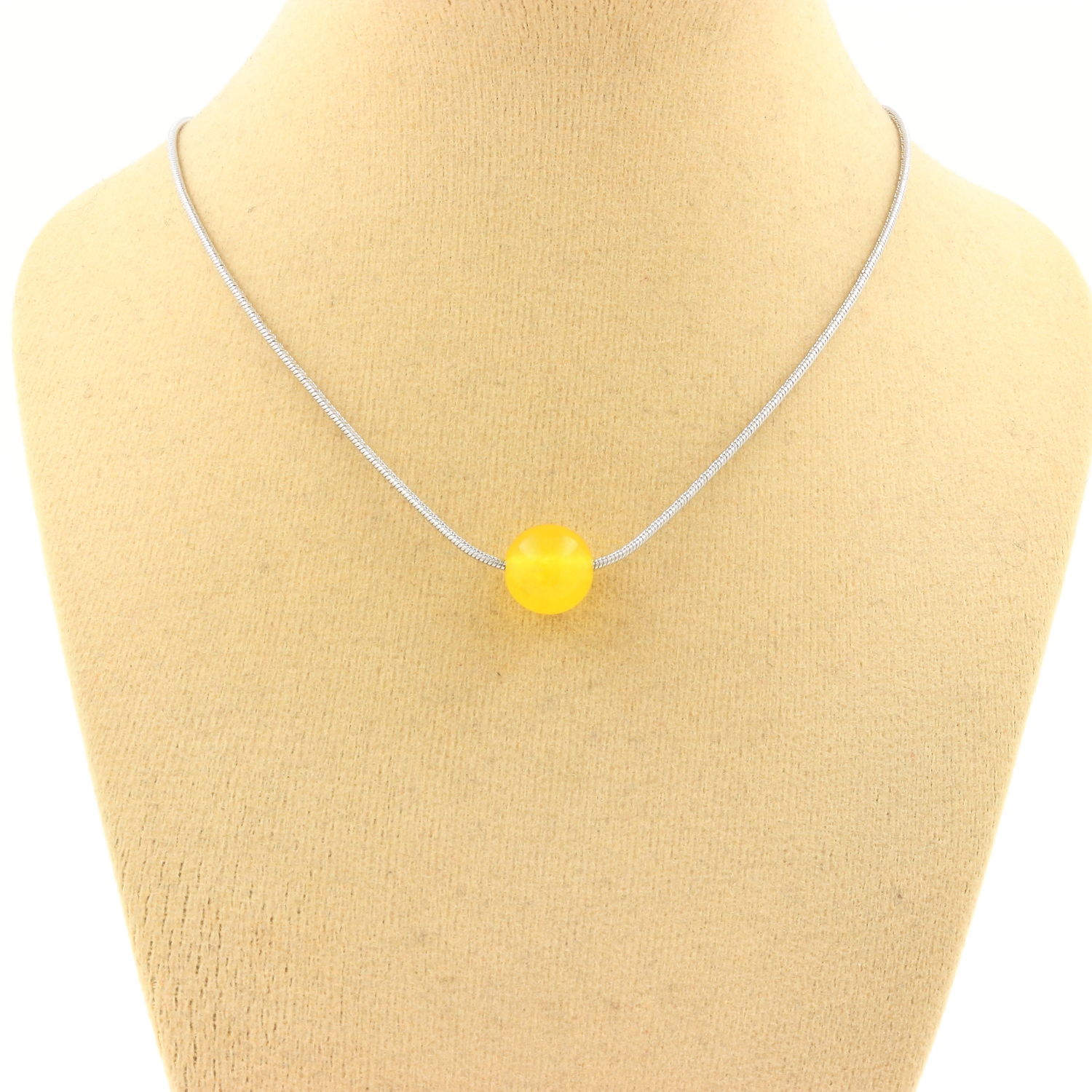 Collier 1 perle Agate jaune 8 mm. Chaine en acier inoxydable.