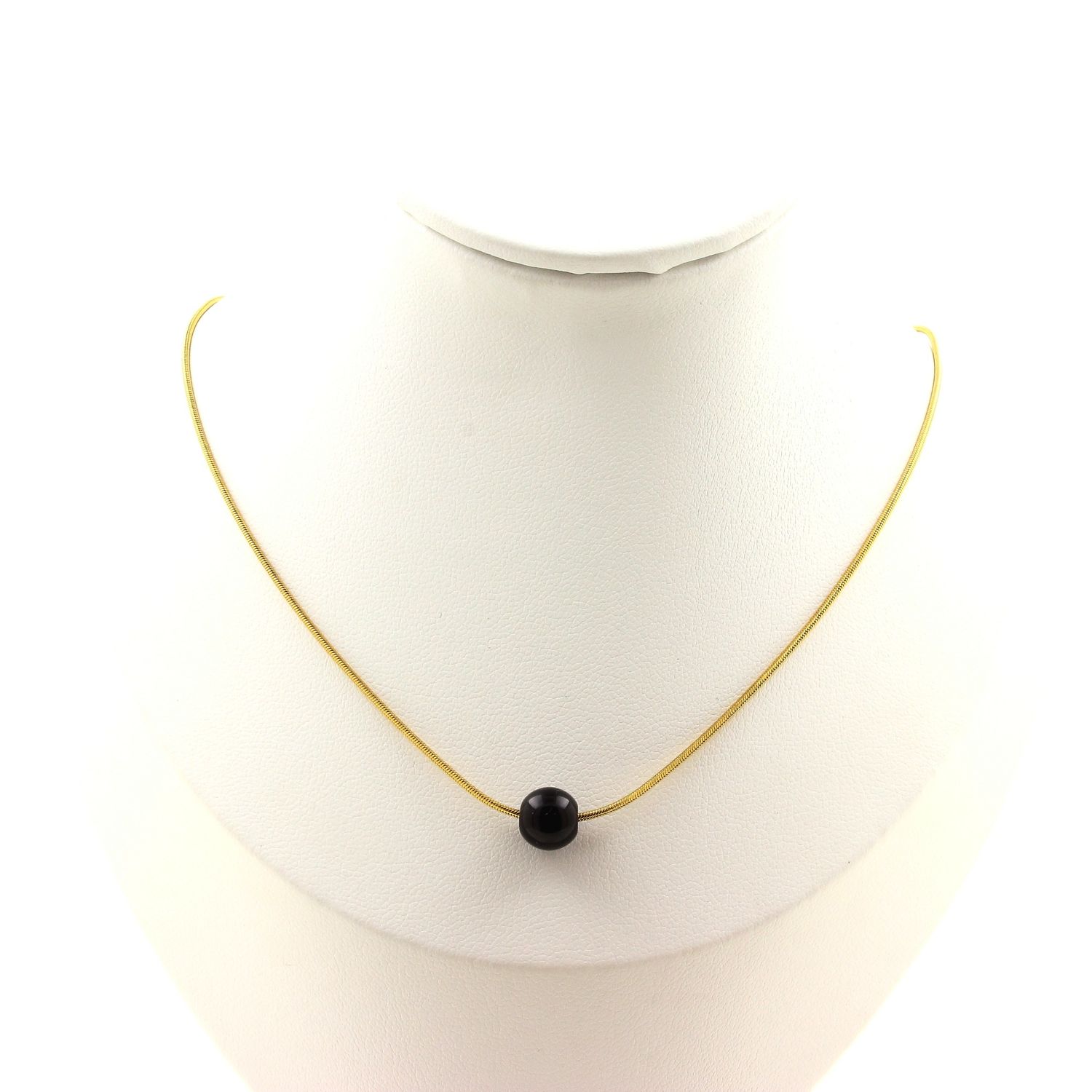 Collier 1 perle Agate noire 8 mm. Chaine en acier doré inoxydable.