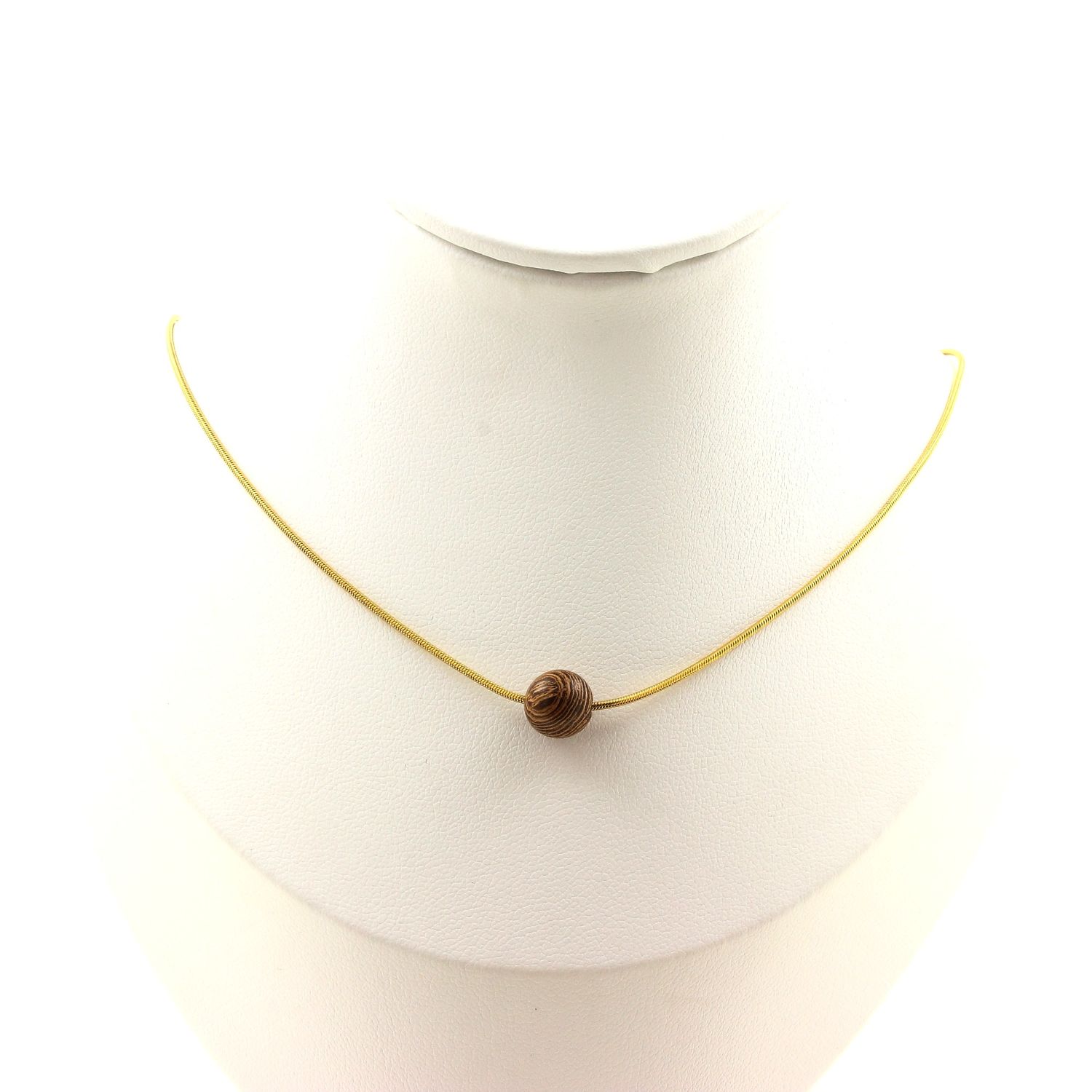Collier 1 perle bois 8 mm chaine en acier doré inoxydable longueur 45 cm. Nous pouvons le fabriquer à votre longueur sur demande. Fabriqué en France dans notre atelier A Bijoux.