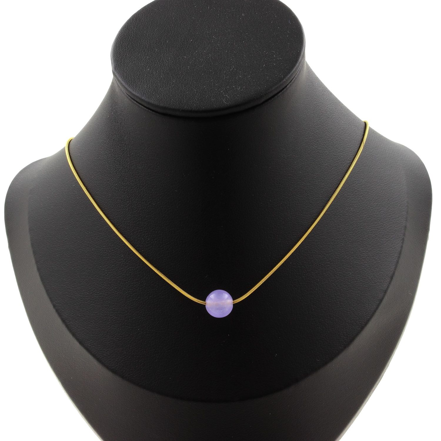Collier 1 perle Calcédoine lavande 8 mm chaine en acier doré inoxydable longueur 45 cm. Nous pouvons le fabriquer à votre longueur sur demande. Fabriqué en France dans notre atelier A Bijoux.