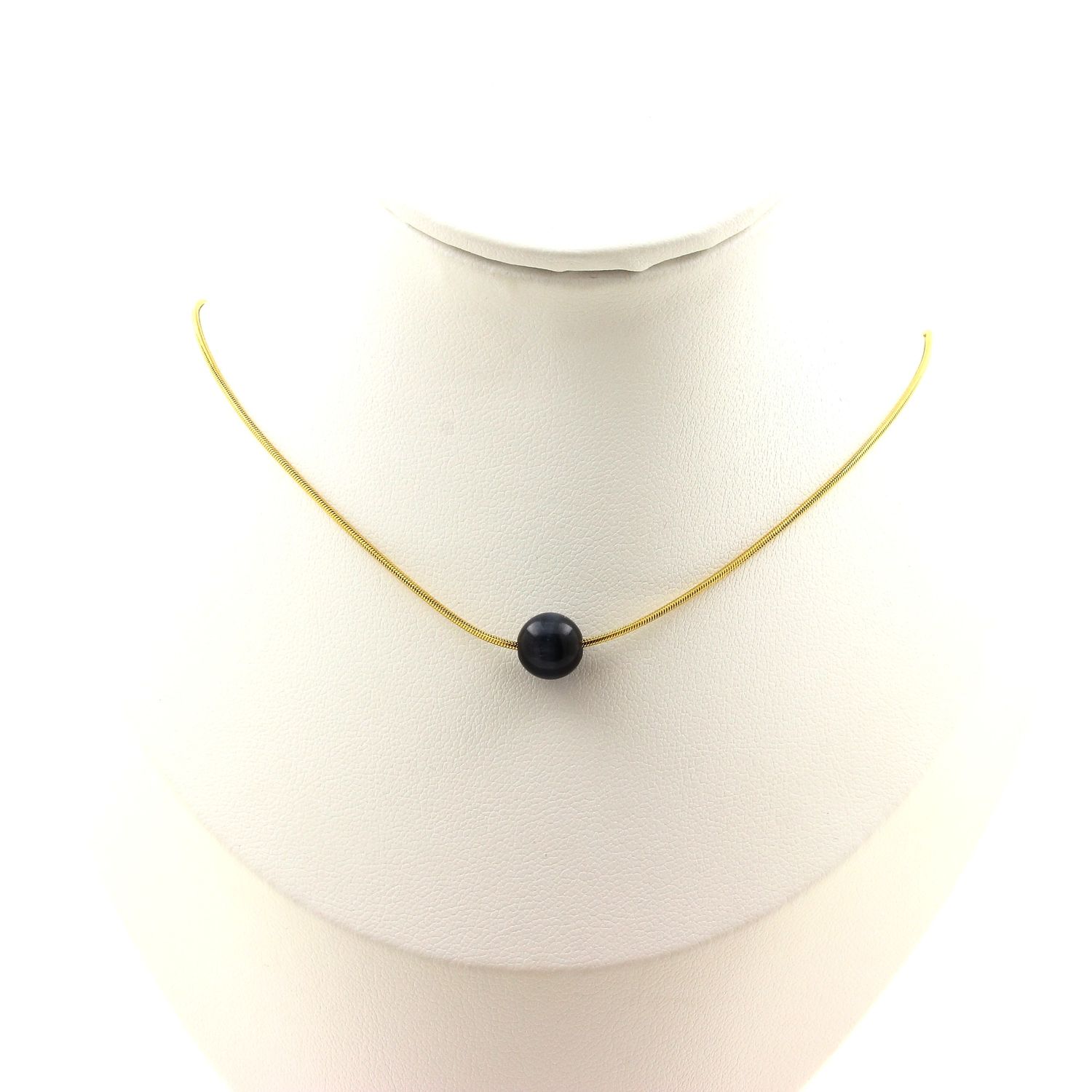 Collier 1 perle Oeil de faucon 8 mm. Chaine en acier doré inoxydable.