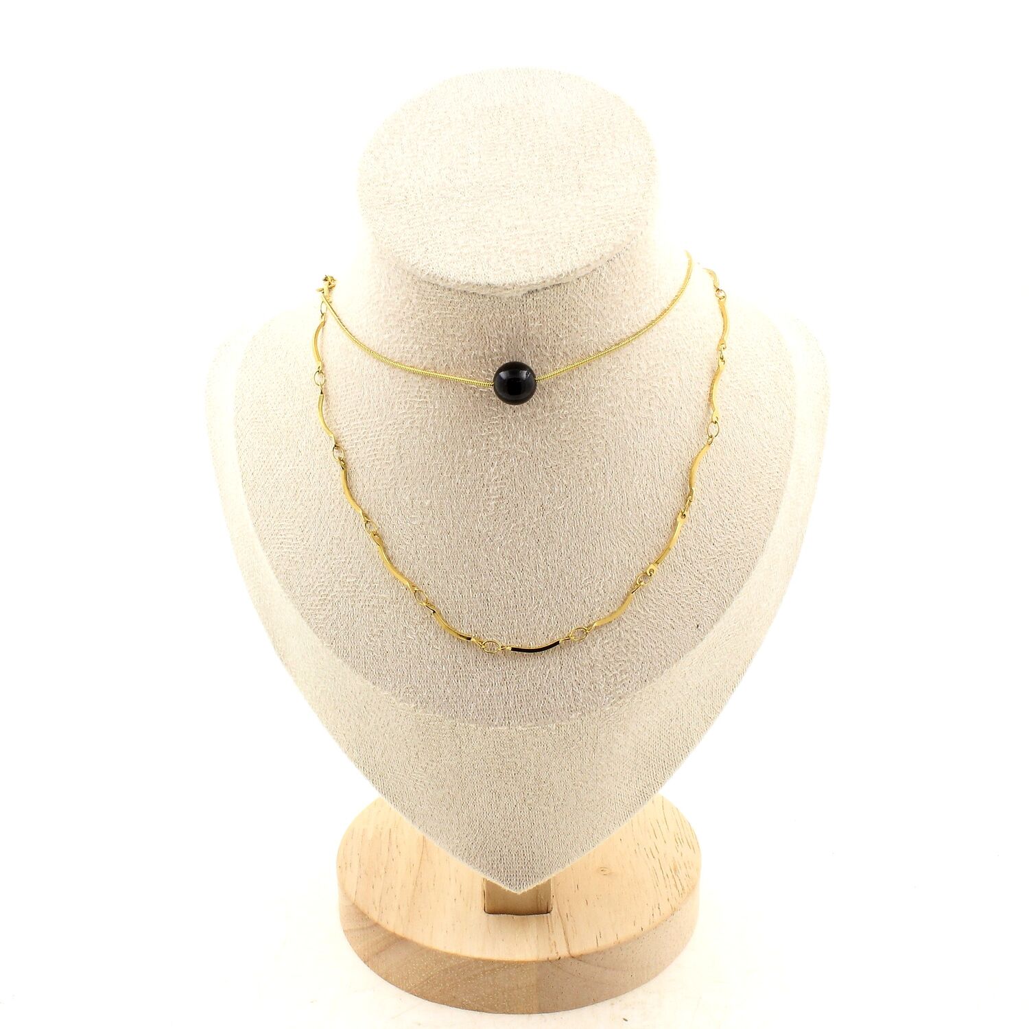 Collier 1 Perle Tourmaline Schorl du Brésil 8 mm double chaine (1x15 mm) en acier doré inoxydable longueur 45 cm. Nous pouvons le fabriquer à votre longueur sur demande. Fabriqué en France dans notre atelier A Bijoux.