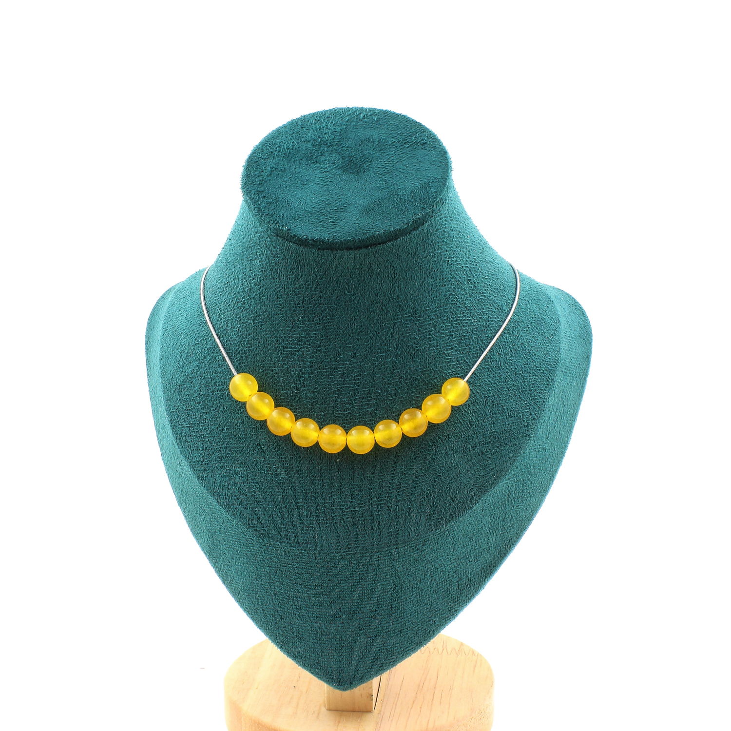 Collier 10 perles Agate jaune 8 mm. Chaine en acier inoxydable
