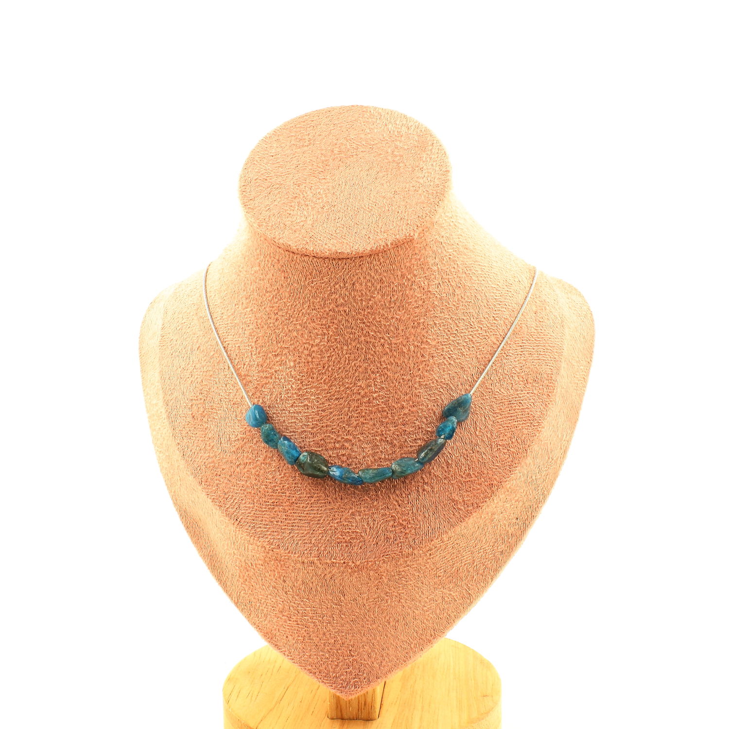 Collier 10 perles Apatite bleu du Brésil. Chaine en acier inoxydable