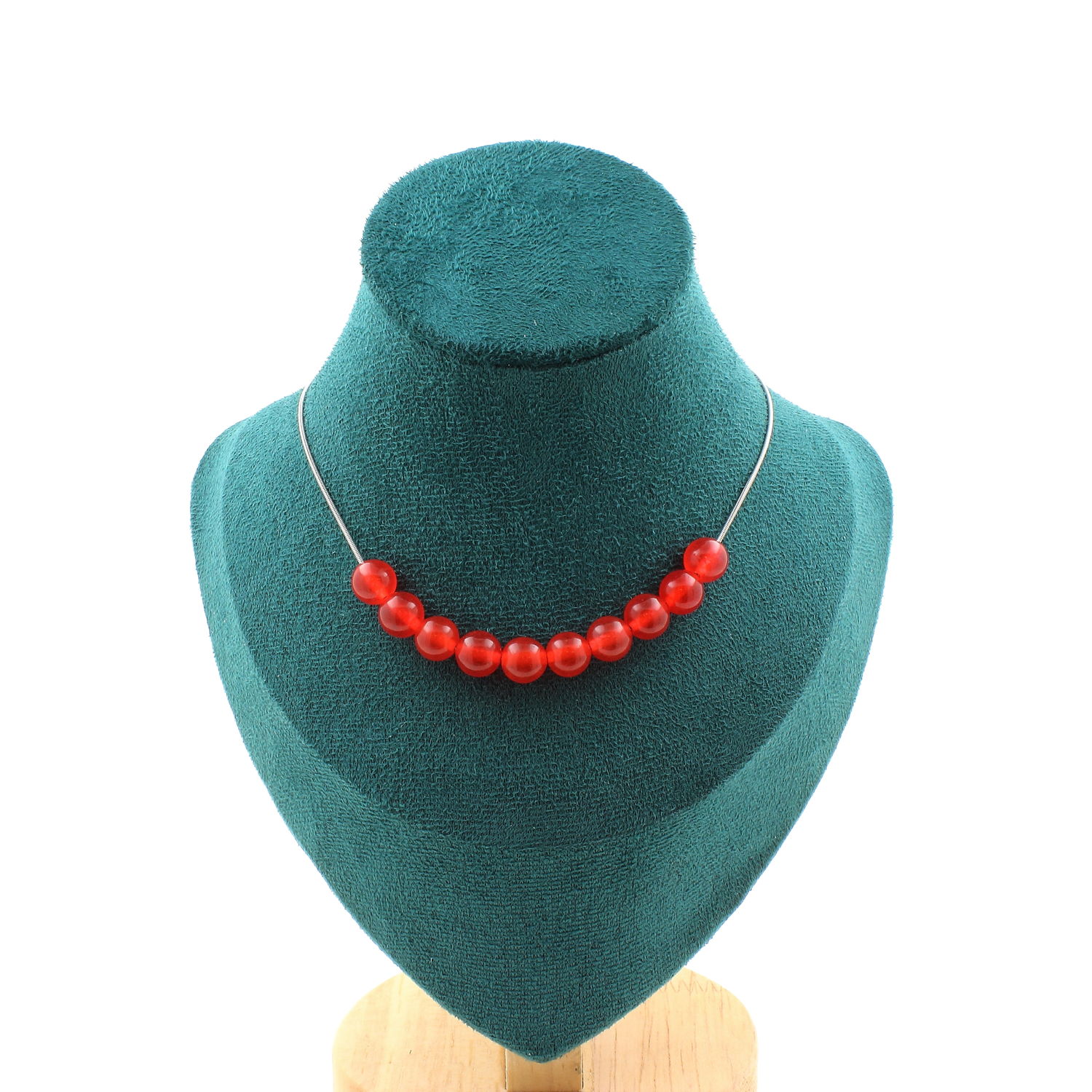 Collier 10 perles Calcédoine rouge 8 mm chaine en acier inoxydable longueur 45 cm. Nous pouvons le fabriquer à votre longueur sur demande. Fabriqué en France dans notre atelier A Bijoux.