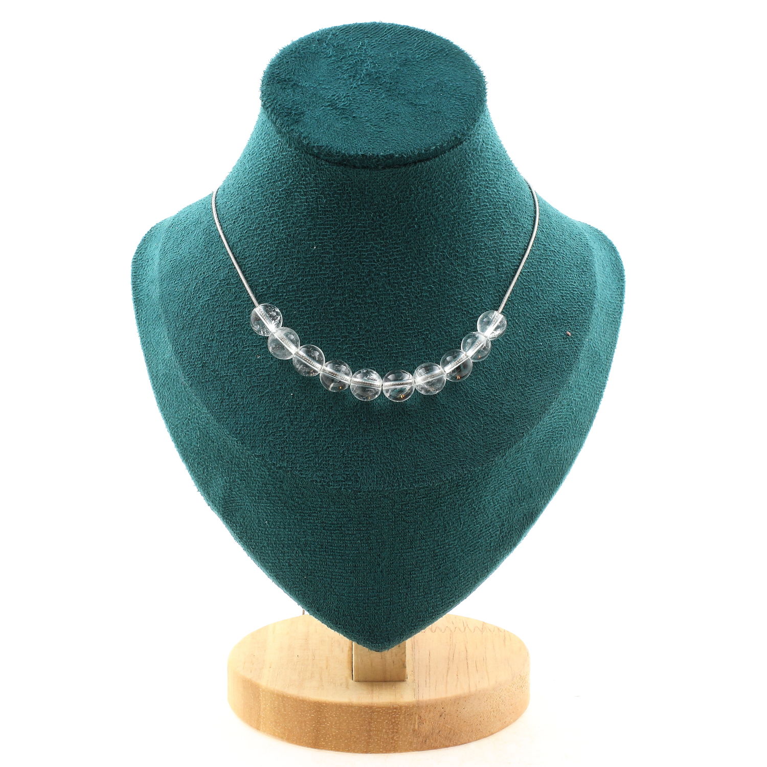 Collier 10 perles Quartz 8 mm Chaine en acier inoxydable