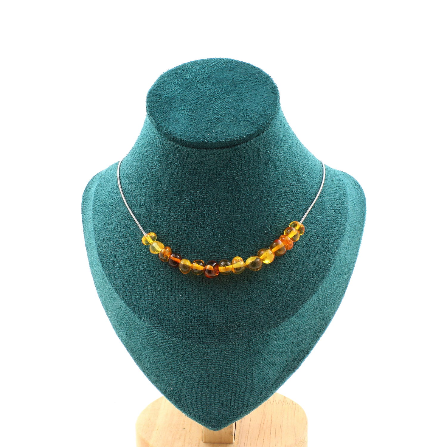 Collier 15 perles Ambre véritable de la mer Baltique. Chaine en acier inoxydable