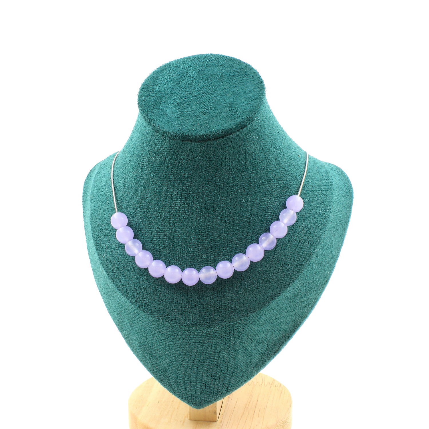 Collier 15 perles Calcédoine lavande 8 mm chaine en acier inoxydable longueur 45 cm. Nous pouvons le fabriquer à votre longueur sur demande . Fabriqué en France dans notre atelier A Bijoux.