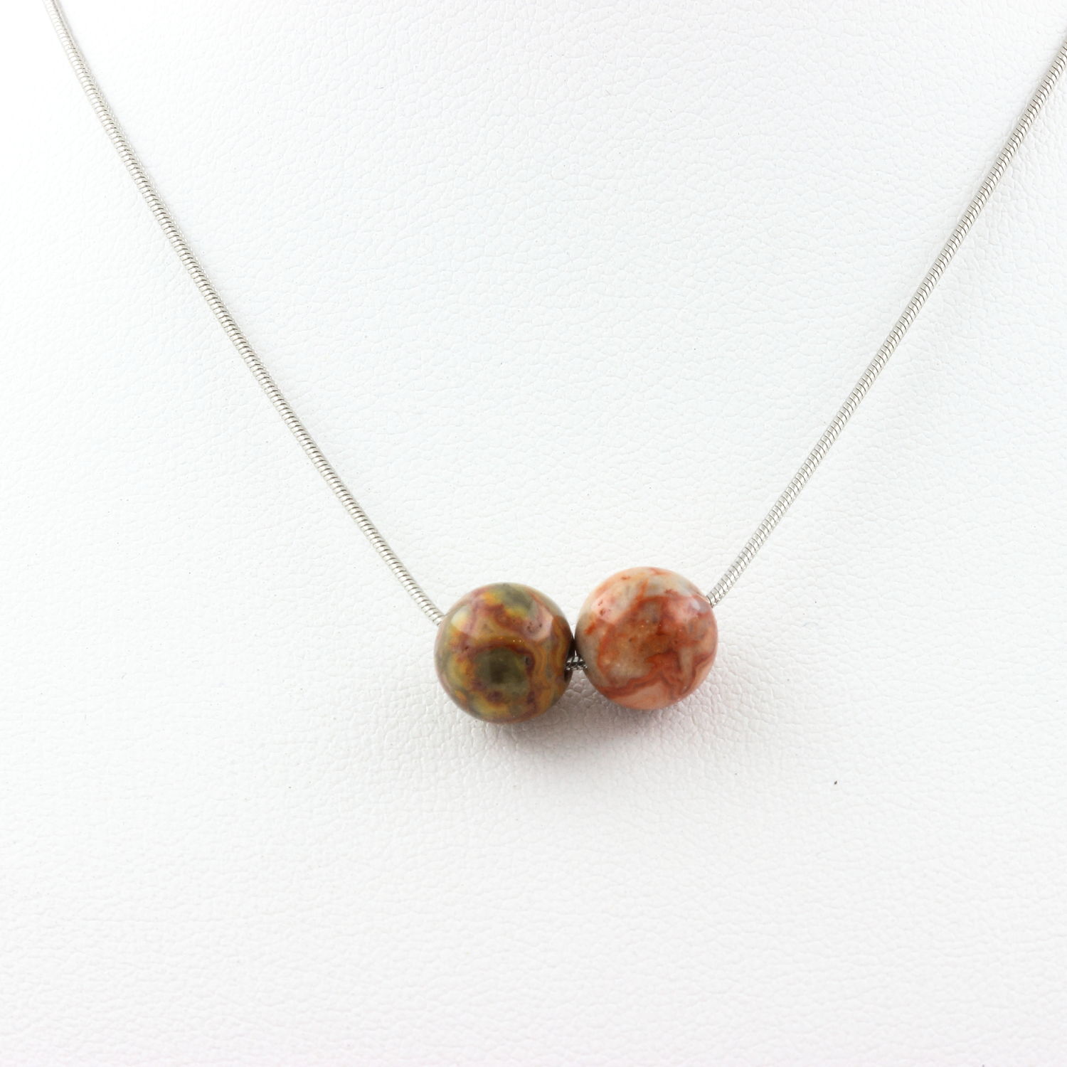 Collier 2 perles Agate crazy lace 8 mm