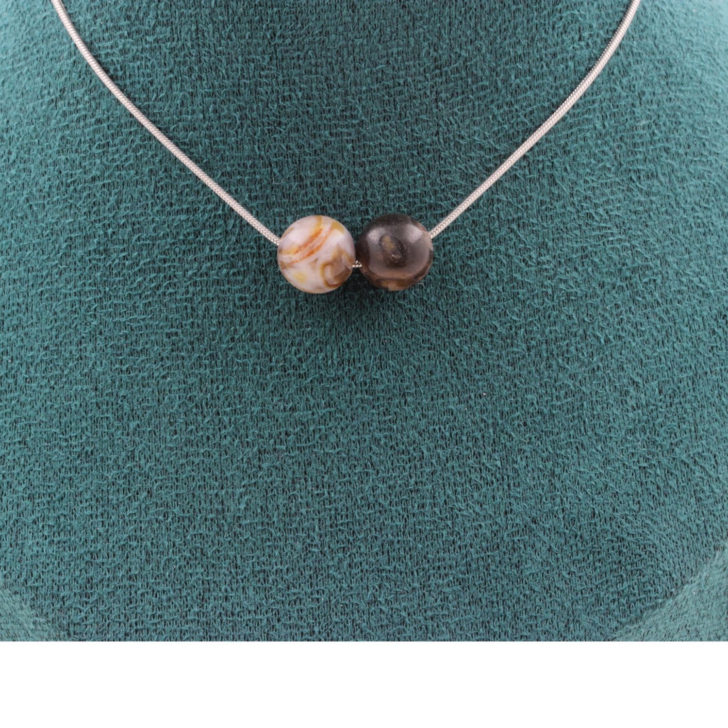 Collier 2 perles Agate Feuille de Bambou 8 mm