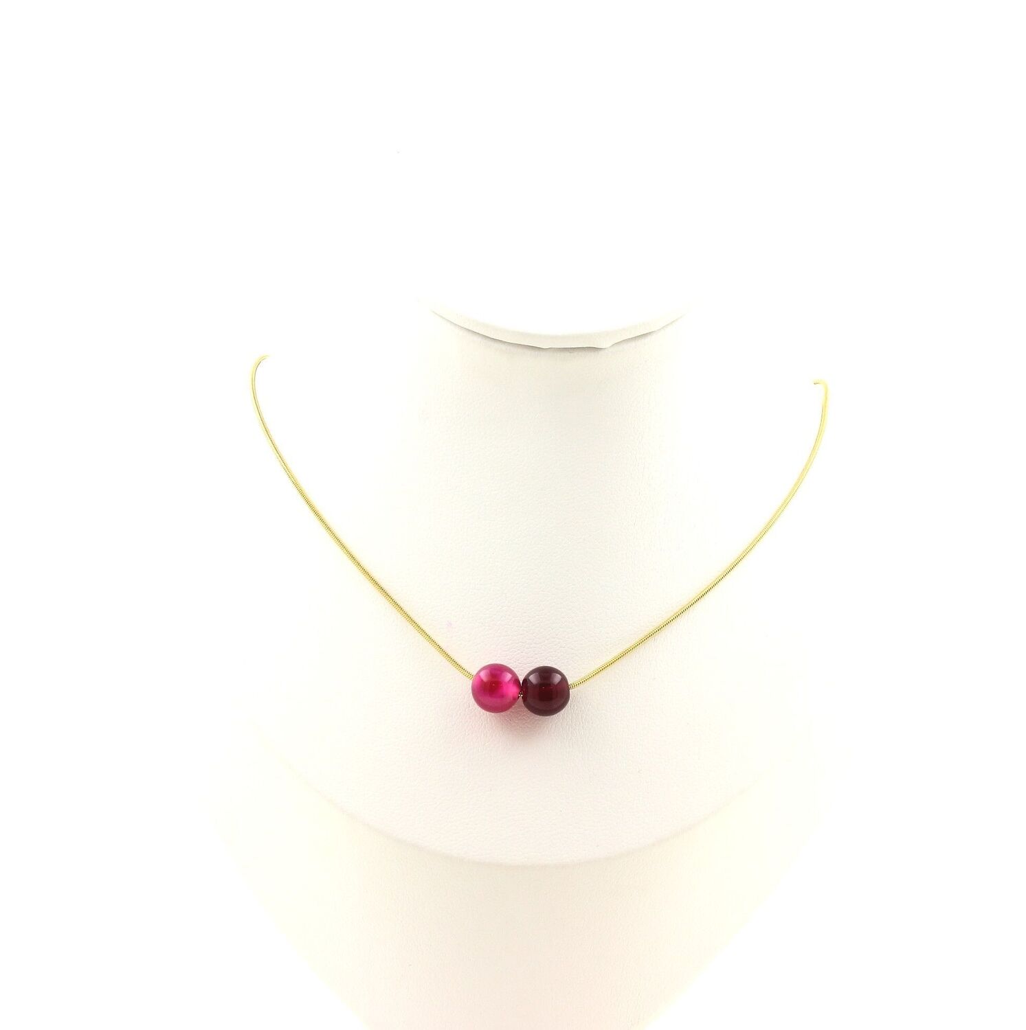 Collier 2 perles Agate rubanée rose 8 mm. Chaine en acier doré inoxydable