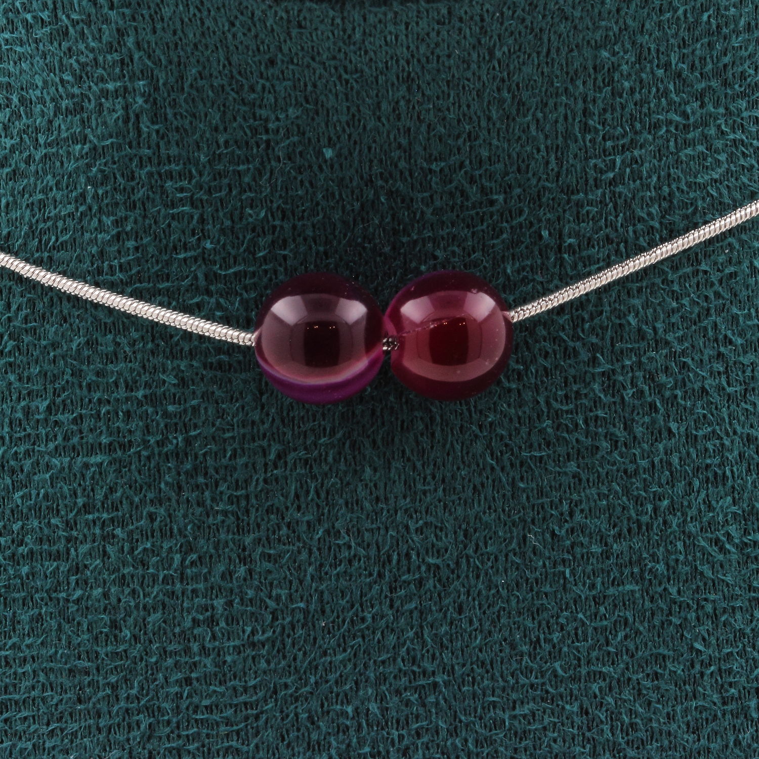 Collier 2 perles Agate craquelé Fuchsia 8 mm. Chaine en acier inoxydable
