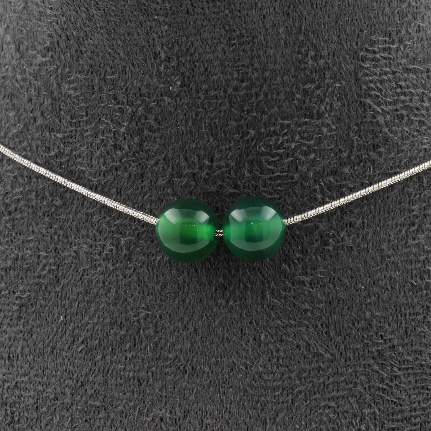 Collier 2 perles Agate verte 8 mm. Chaine en acier inoxydable