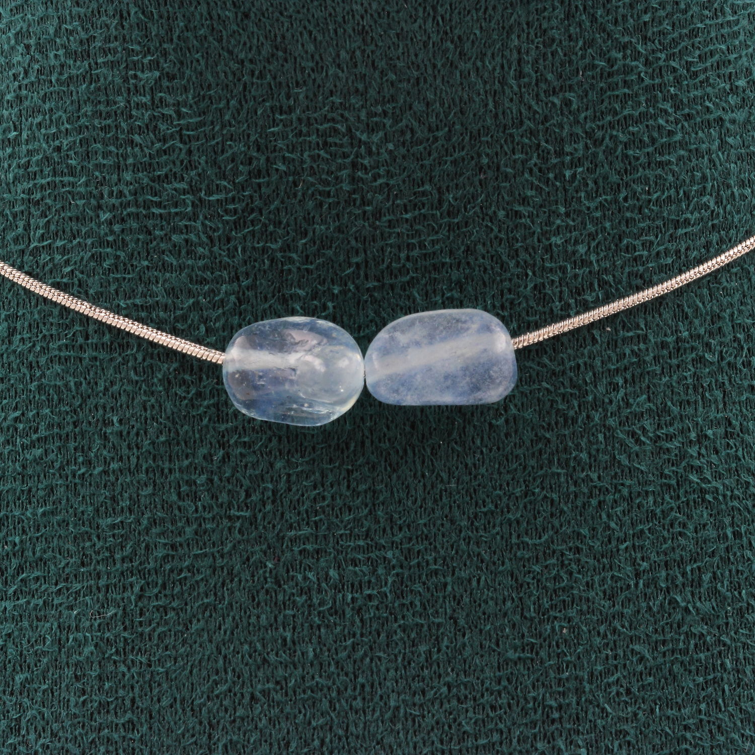 Collier 2 perles Aigue-Marine du Brésil. Chaine en acier inoxydable