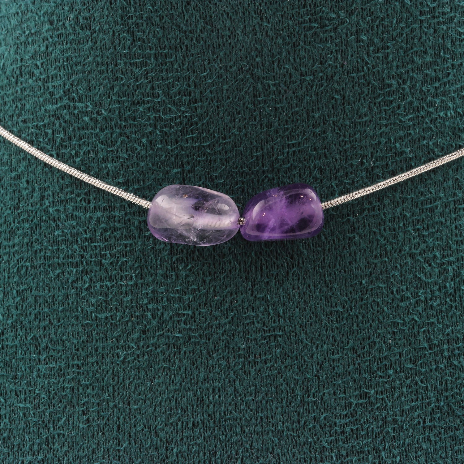 Collier 2 perles Améthyste du Brésil. Chaine en acier inoxydable