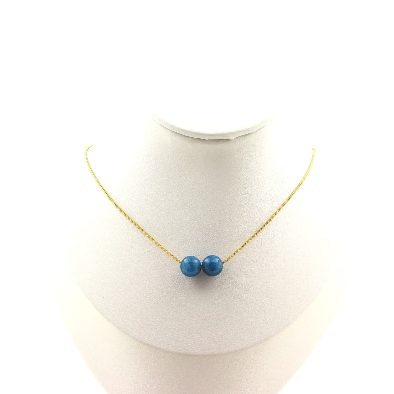 Collier 2 perles Apatite 8 mm. Chaine en acier doré inoxydable