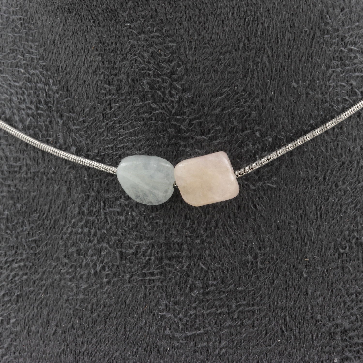 Collier 2 perles Béryl Morganite du Brésil. Chaine en acier inoxydable