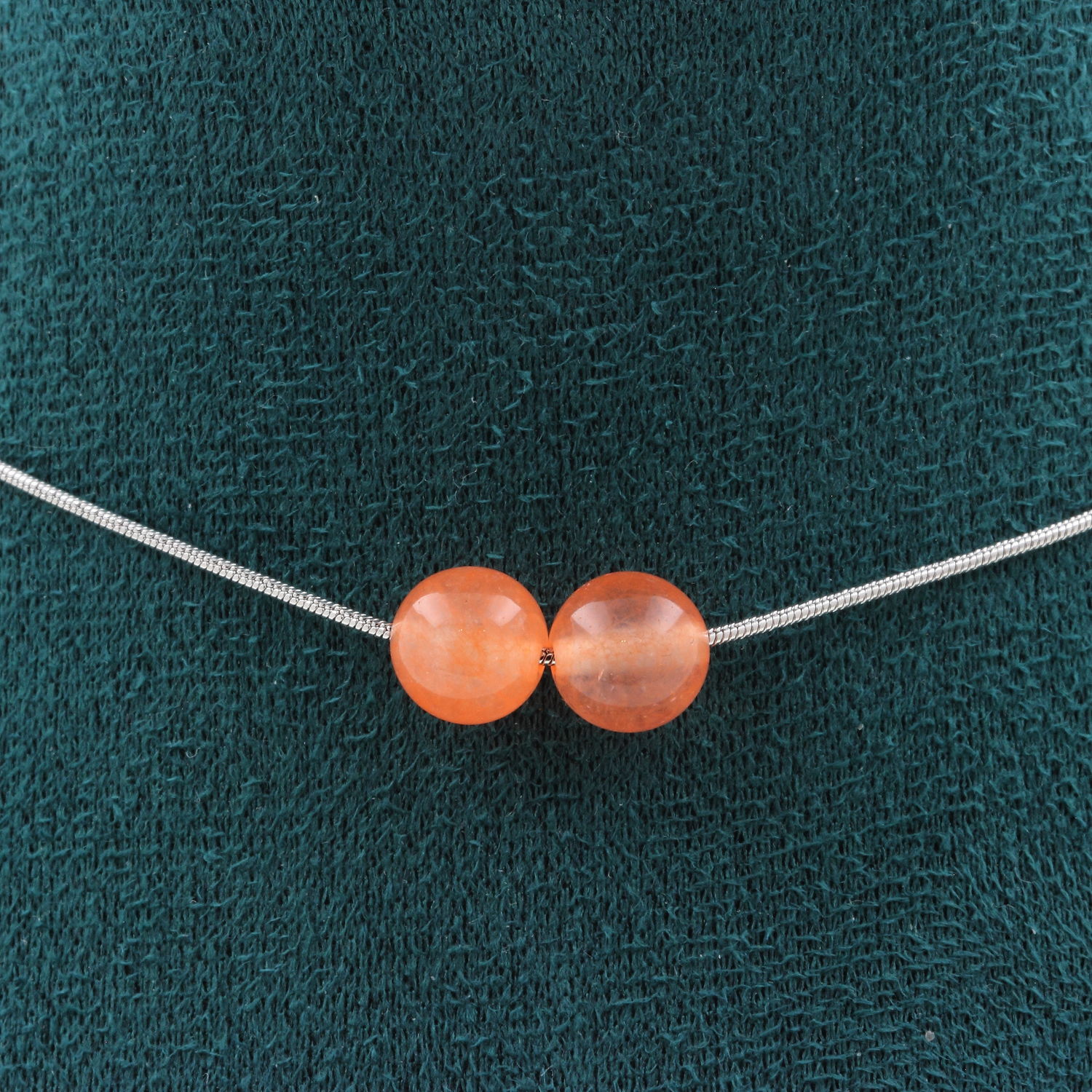 Collier 2 perles Calcédoine orange 8 mm. Chaine en acier inoxydable