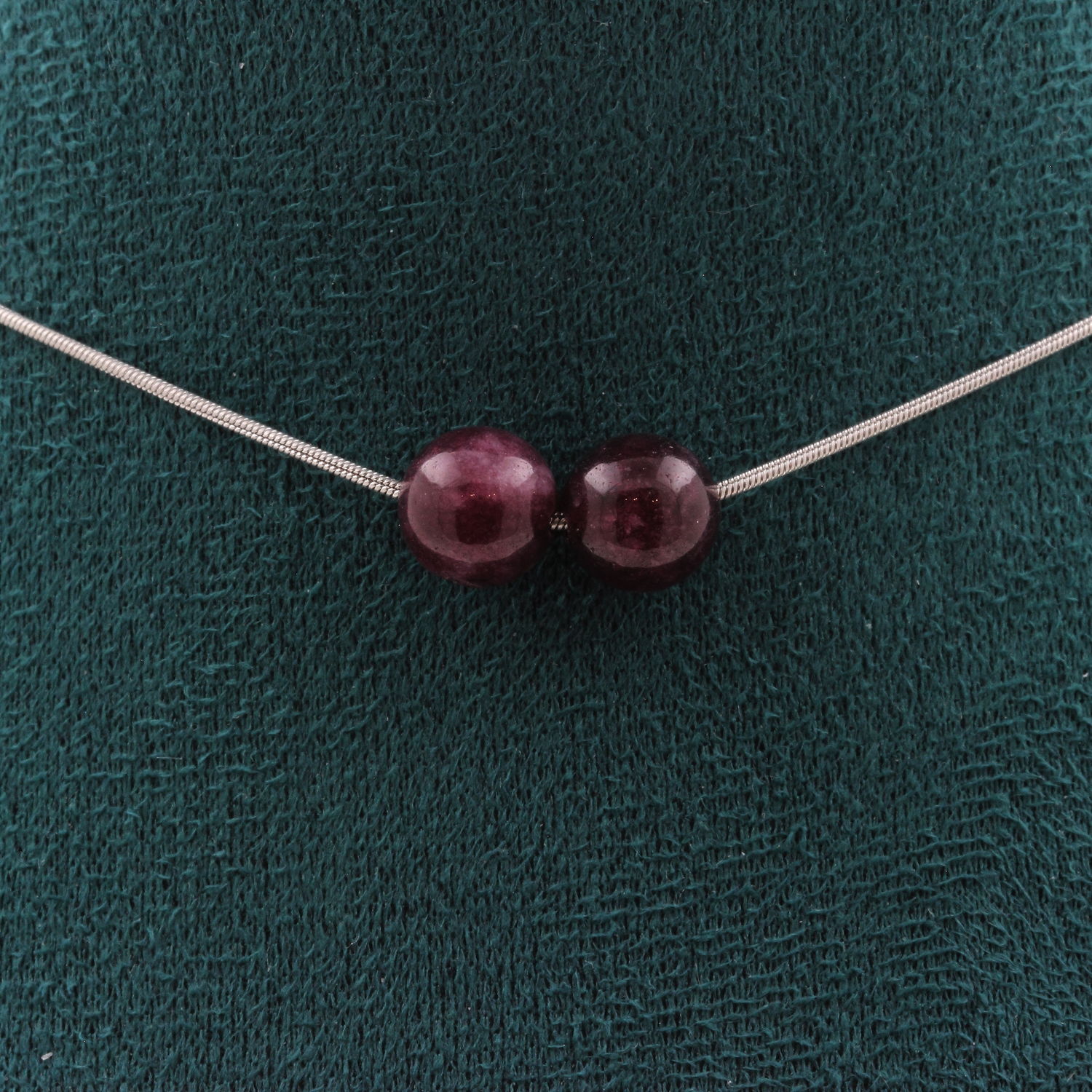 Collier 2 perles Grenat 8 mm. Chaine en acier inoxydable