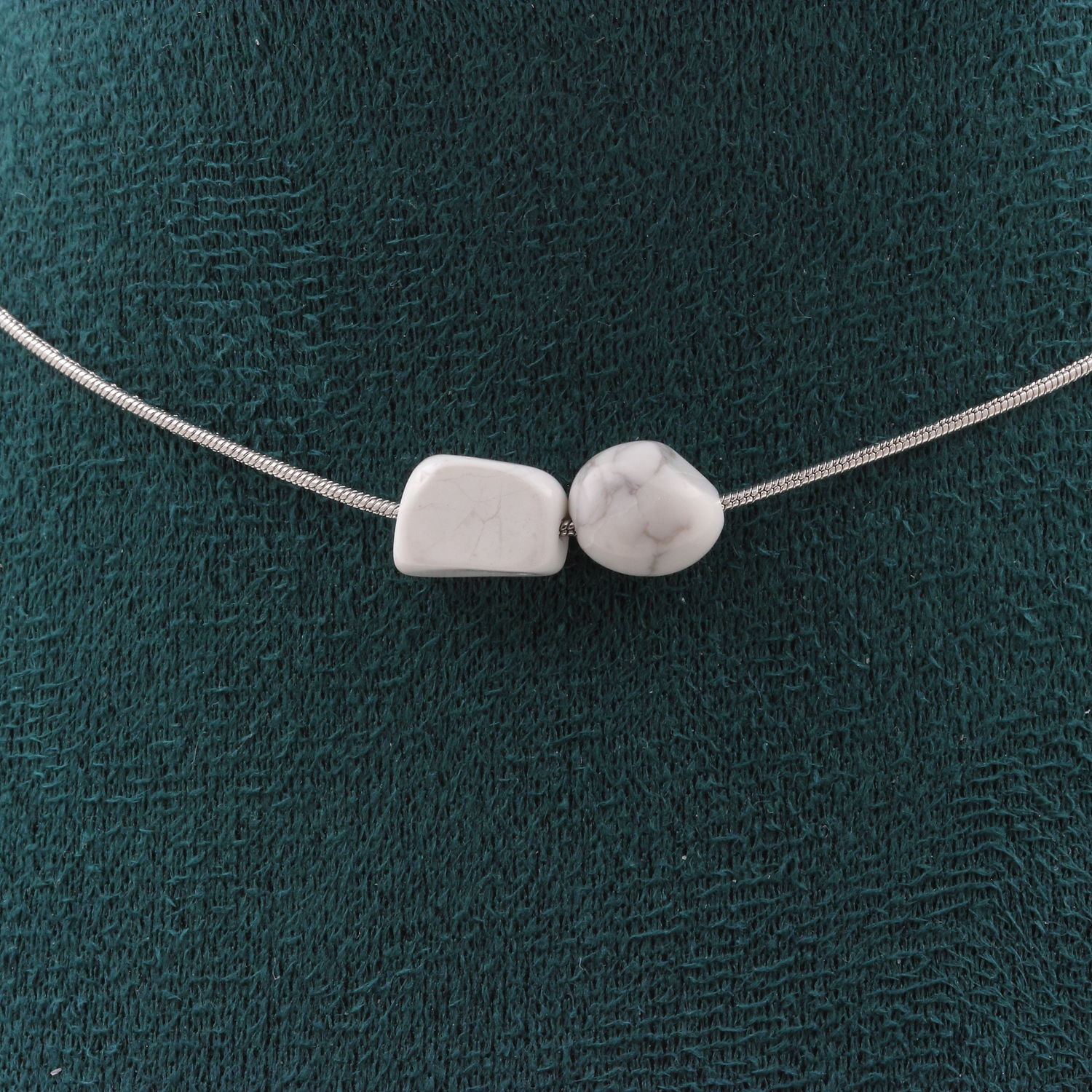 Collier 2 perles Howlite des USA. Chaine en acier inoxydable