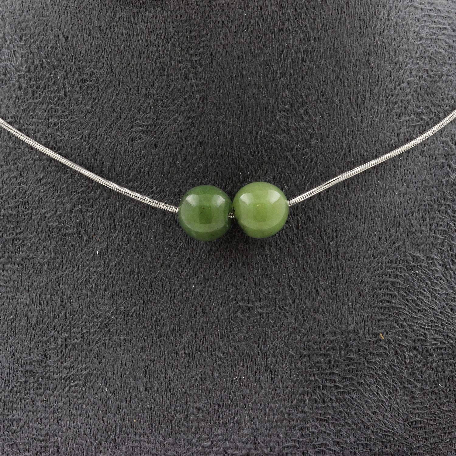 Collier 2 perles Jade 8 mm. Chaine en acier inoxydable