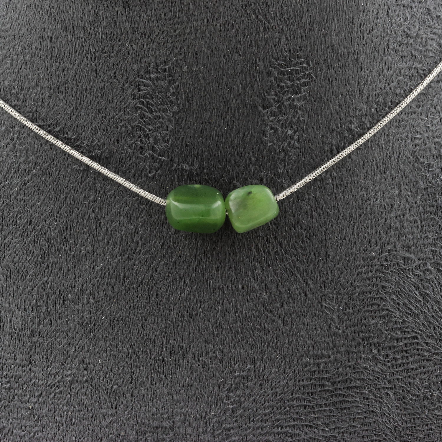 Collier 2 perles Jade néphrite de Sibérie (Russie). Chaine en acier inoxydable