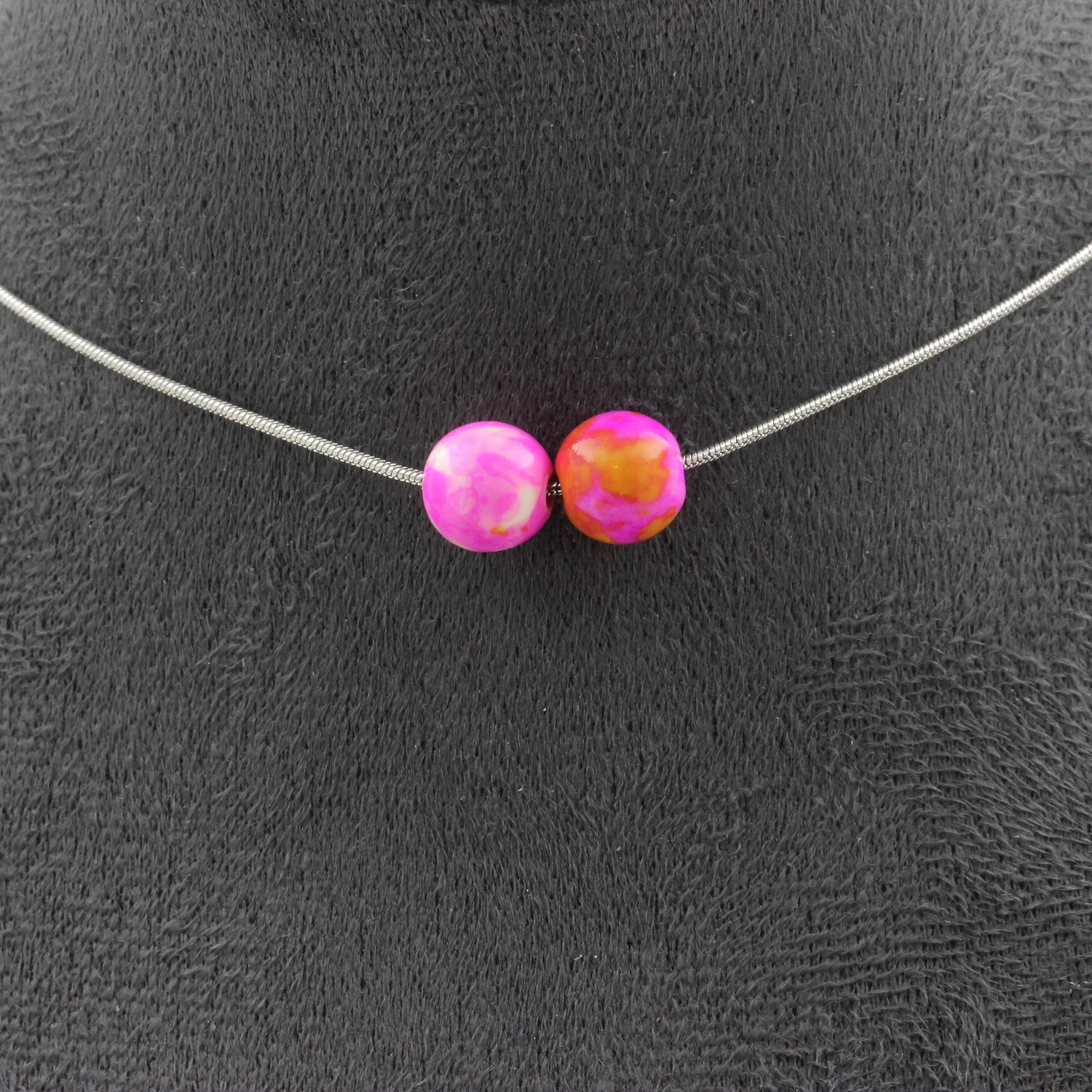 Collier 2 perles Jaspe rose jaune 8 mm chaine en acier inoxydable longueur 45 cm. Nous pouvons le fabriquer à votre longueur sur demande. Fabriqué en France dans notre atelier A Bijoux.