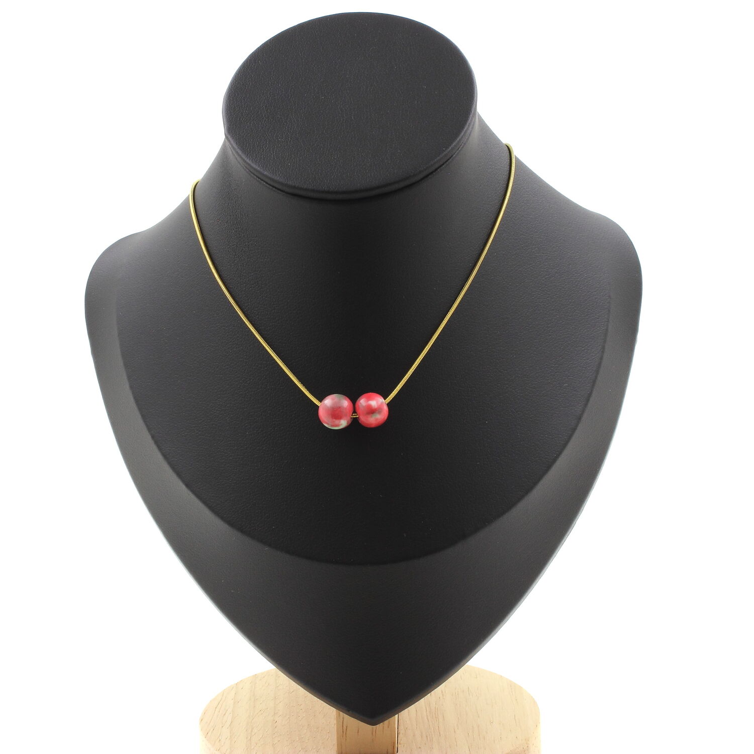 Collier 2 perles Jaspe vert rouge 8 mm chaine en acier doré inoxydable longueur 45 cm. Nous pouvons le fabriquer à votre longueur sur demande. Fabriqué en France dans notre atelier A Bijoux.