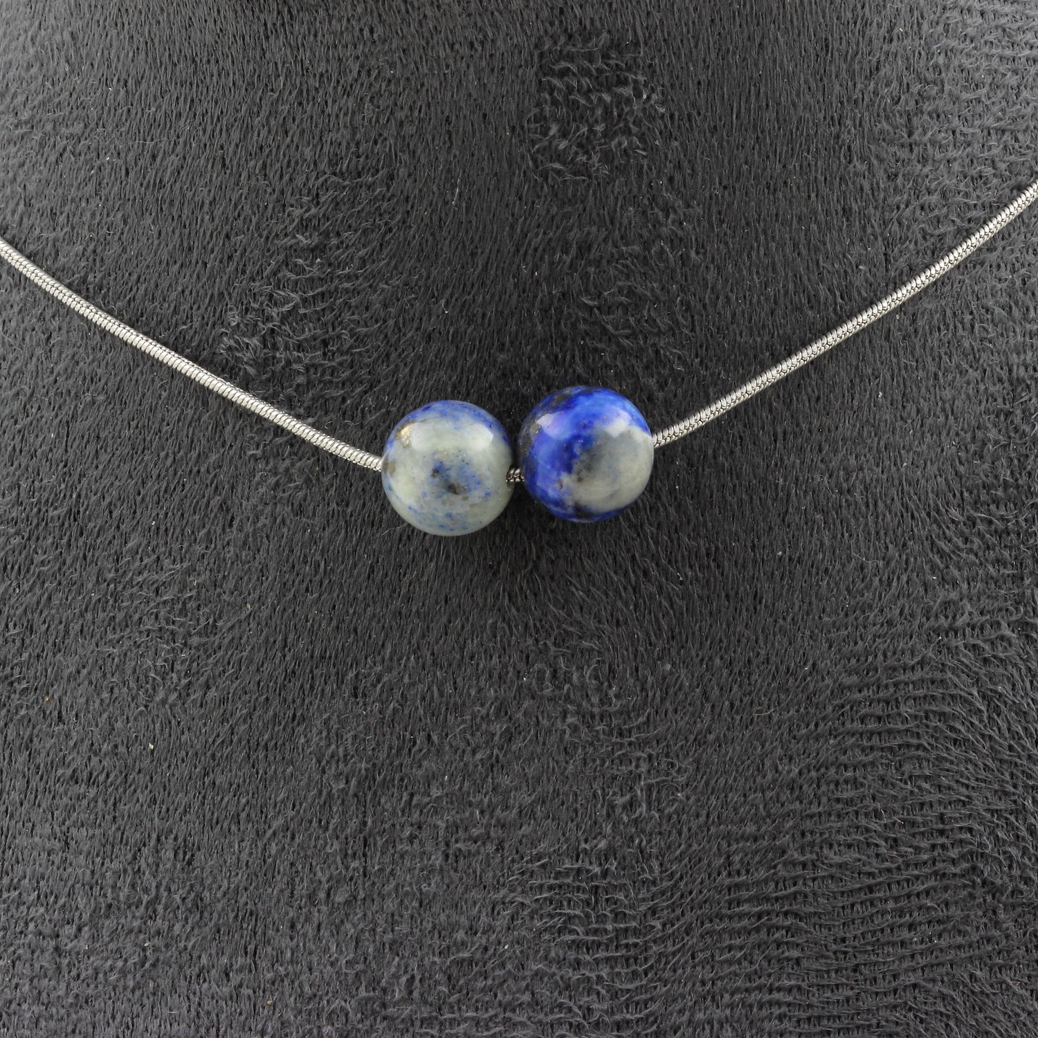 Collier 2 perles Lapis Lazuli du Pakistan qualité 5A 8 mm. Chaine en acier inoxydable