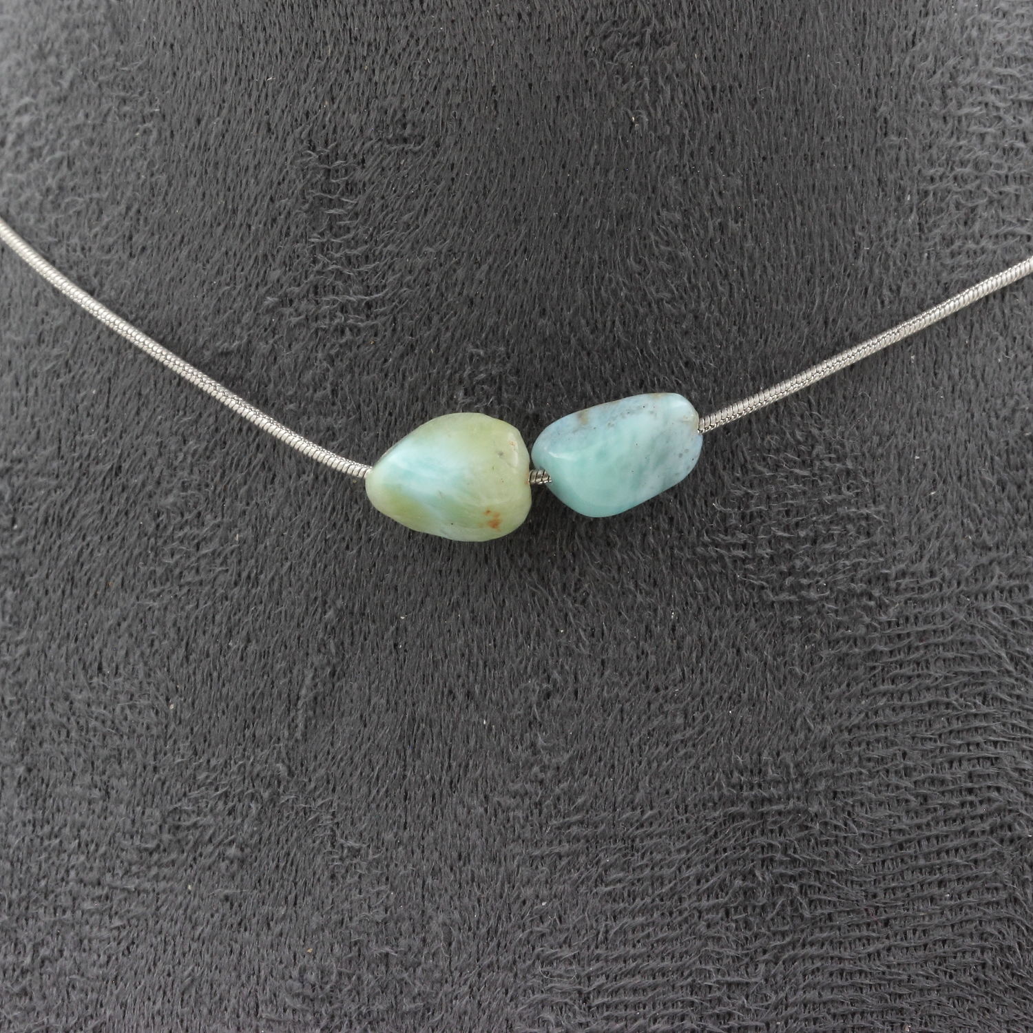 Collier 2 perles Larimar de République Dominicaine. Chaine en acier inoxydable