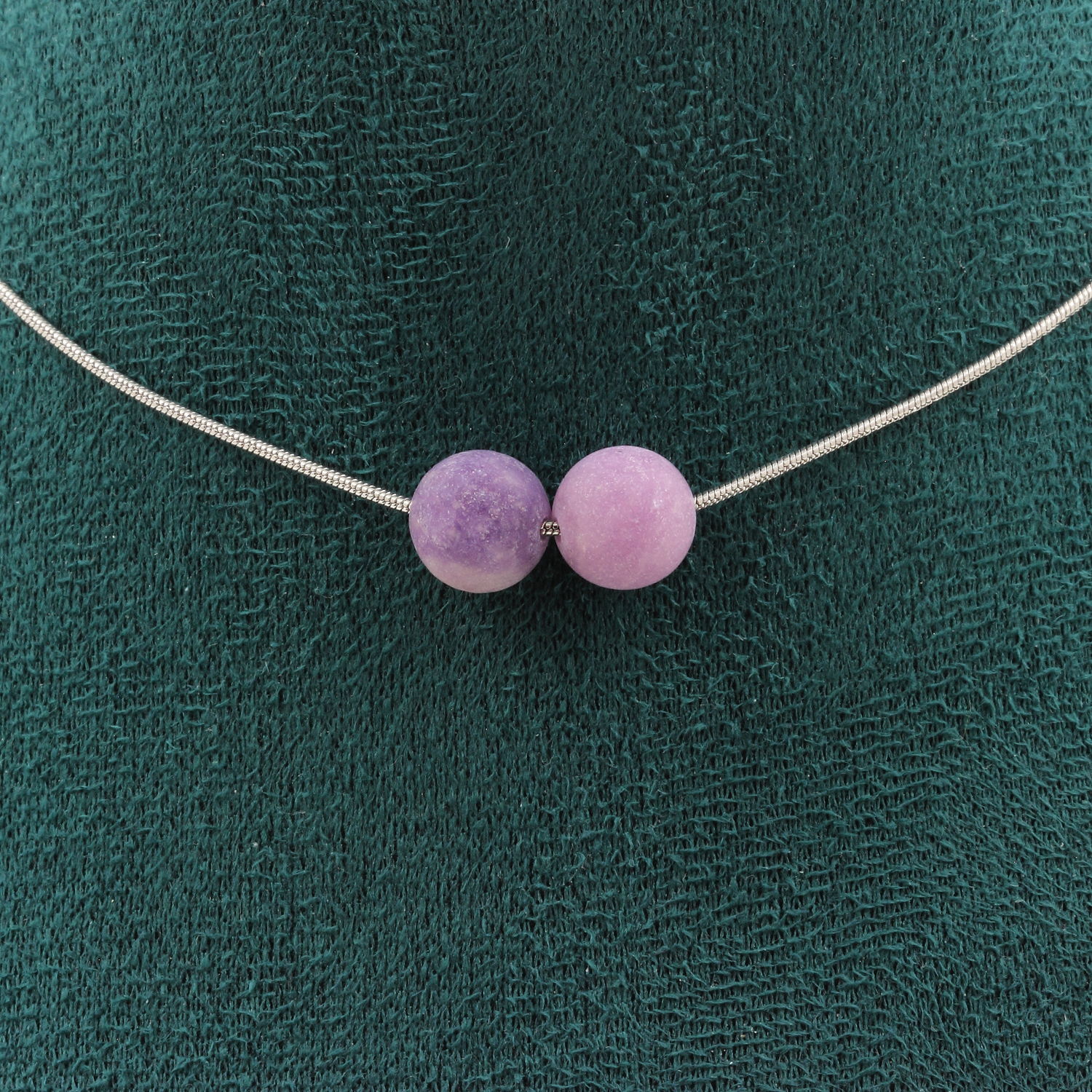 Collier 2 perles Mica violet mat 8 mm. Chaine en acier inoxydable
