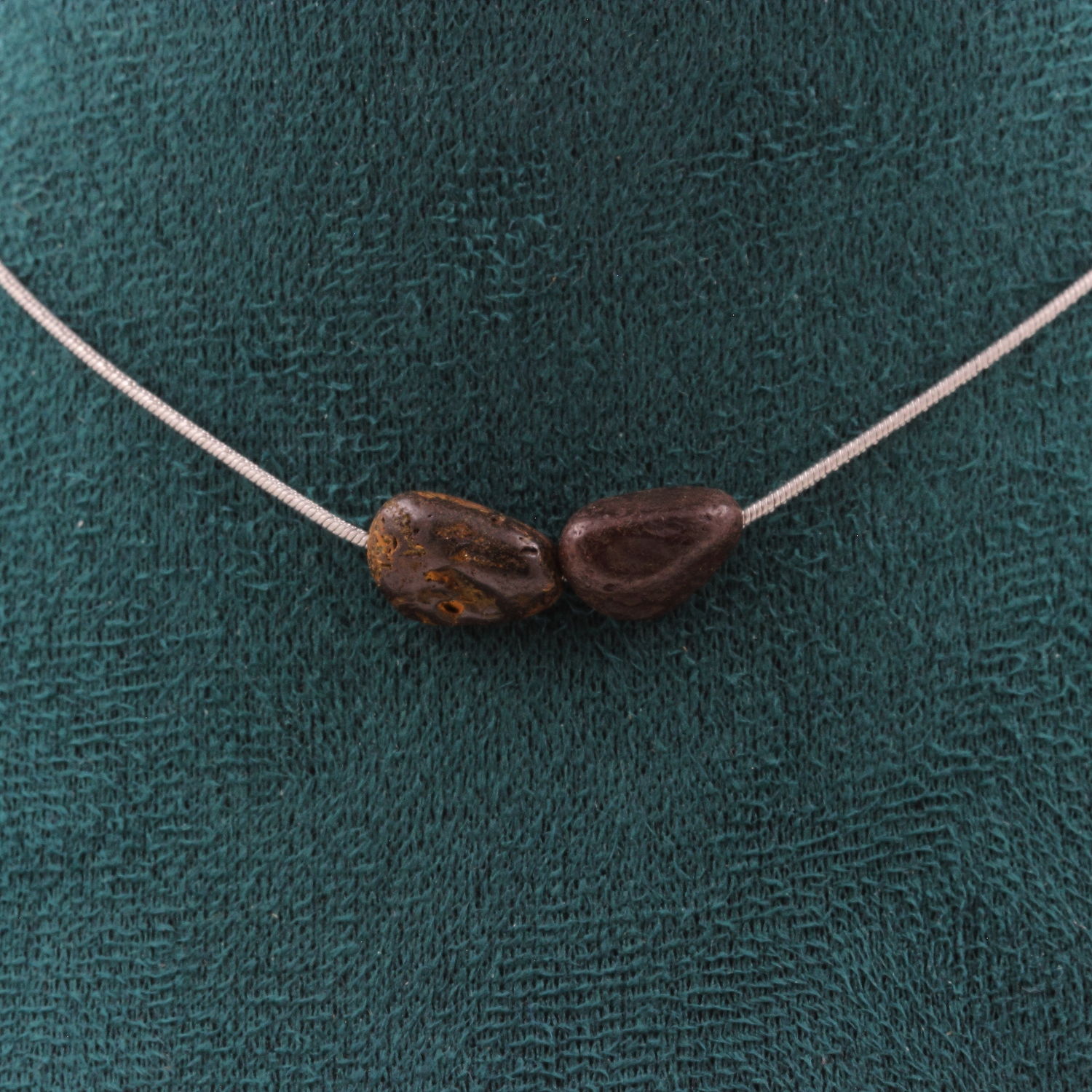 Collier 2 perles Opale Boulder d'Australie. Chaine en acier inoxydable